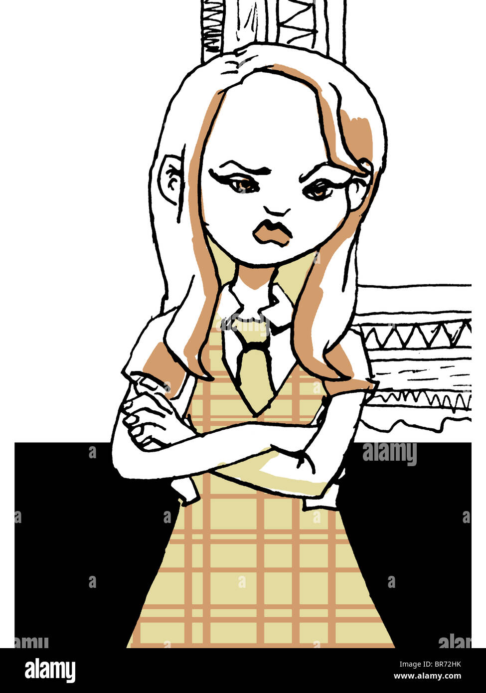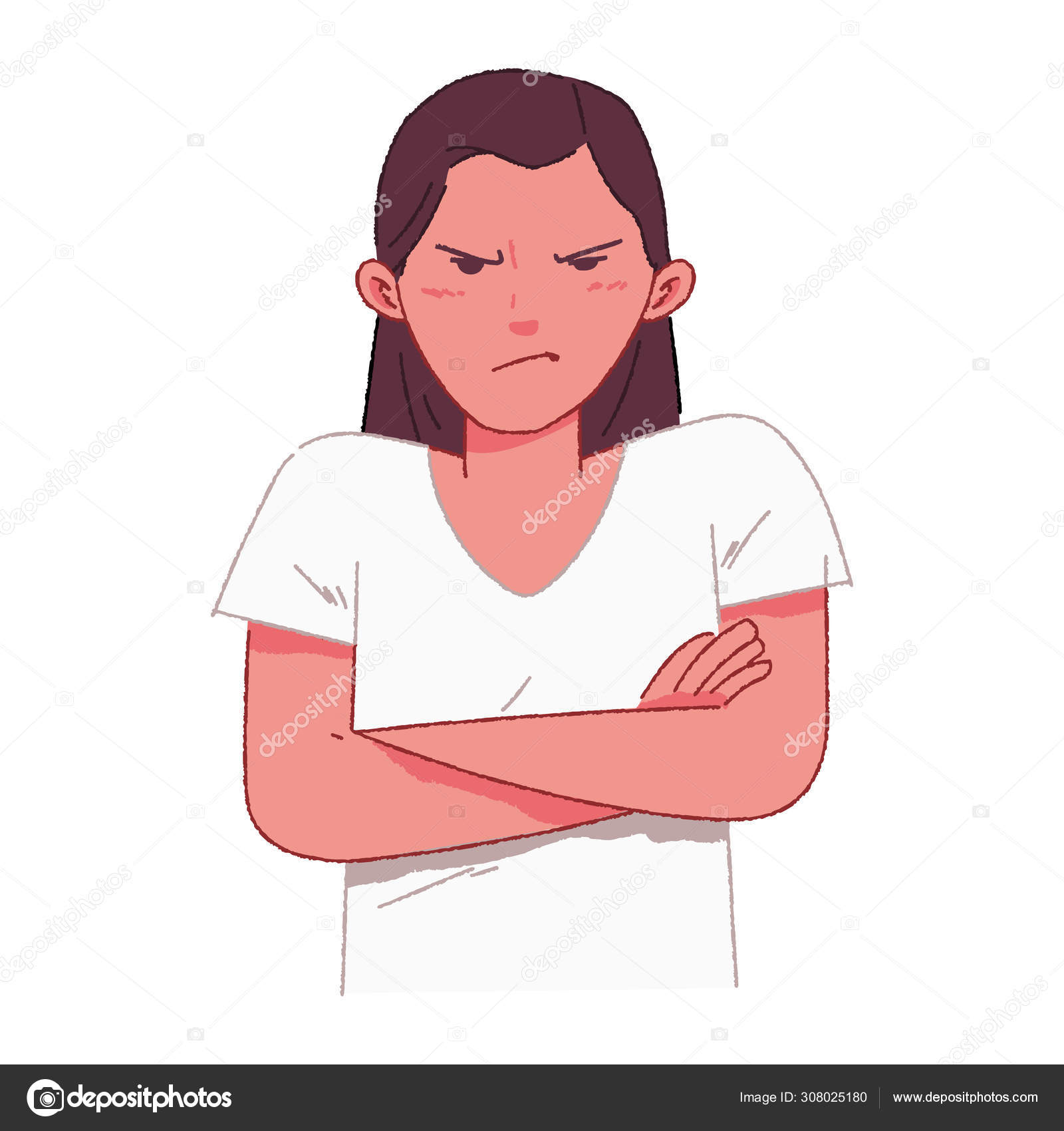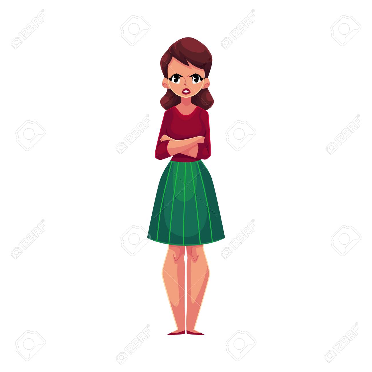 Cartoon Girl With Arms Folded Mad