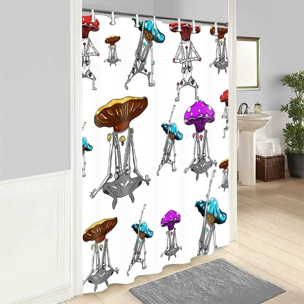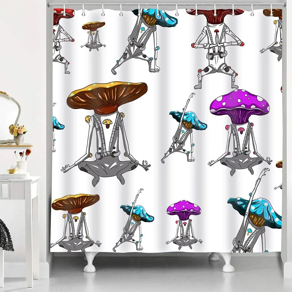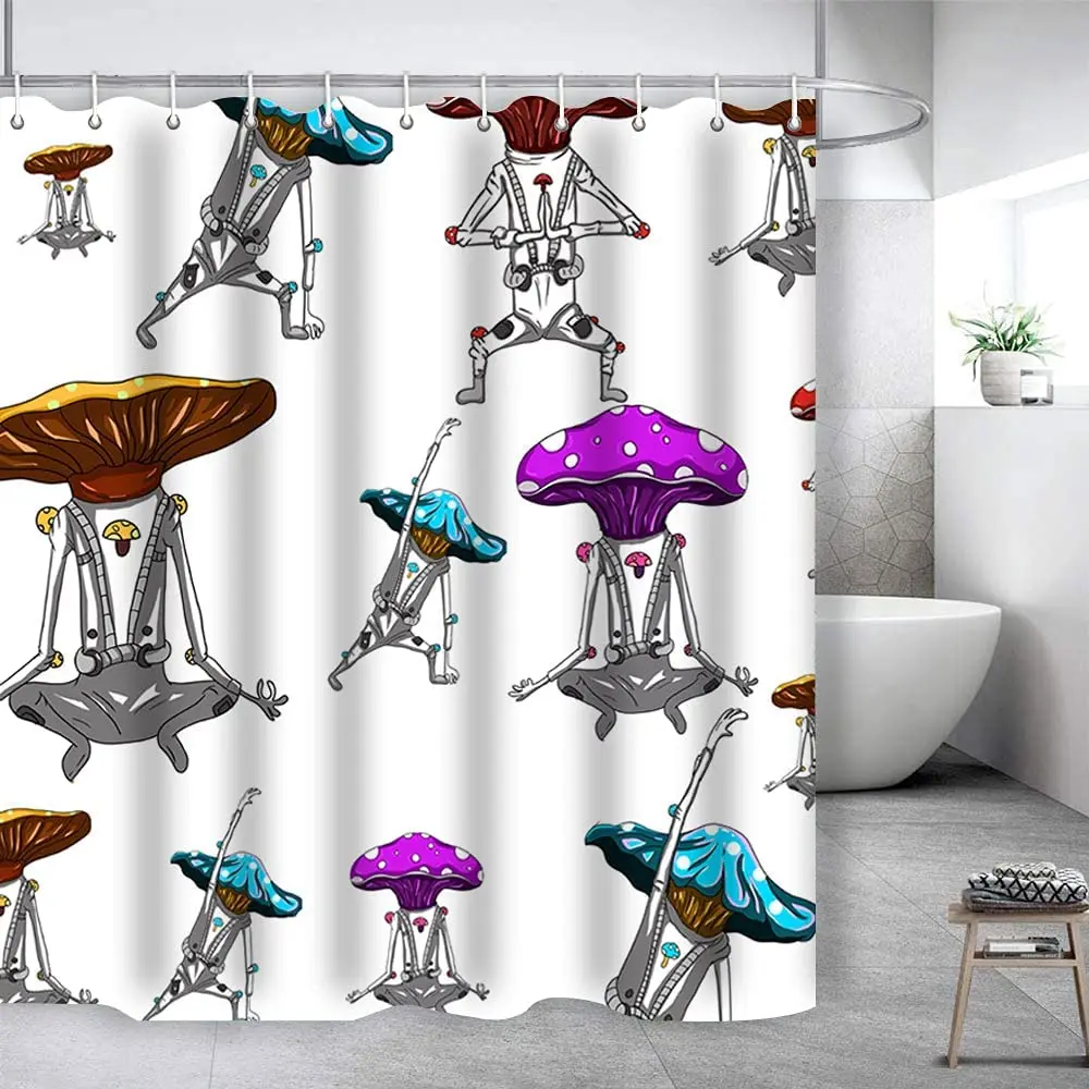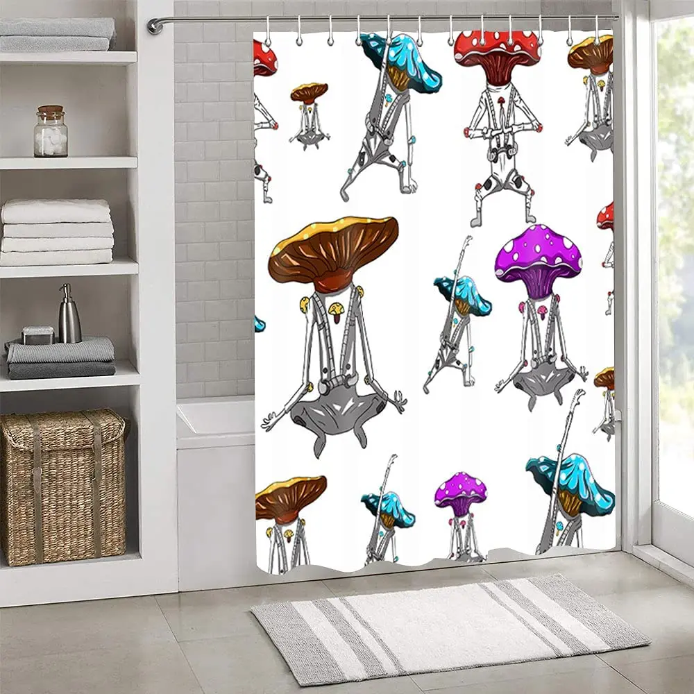 «Cartoon Mushroom Shower Curtain Alien Strange Dance Colorful Interesting Bath Curtains Waterproof with Hooks Bathroom Decor» по лучшей цене на рынке! Всего за 11$ (1045рублей)