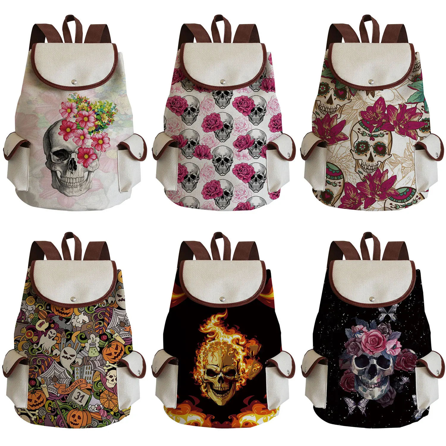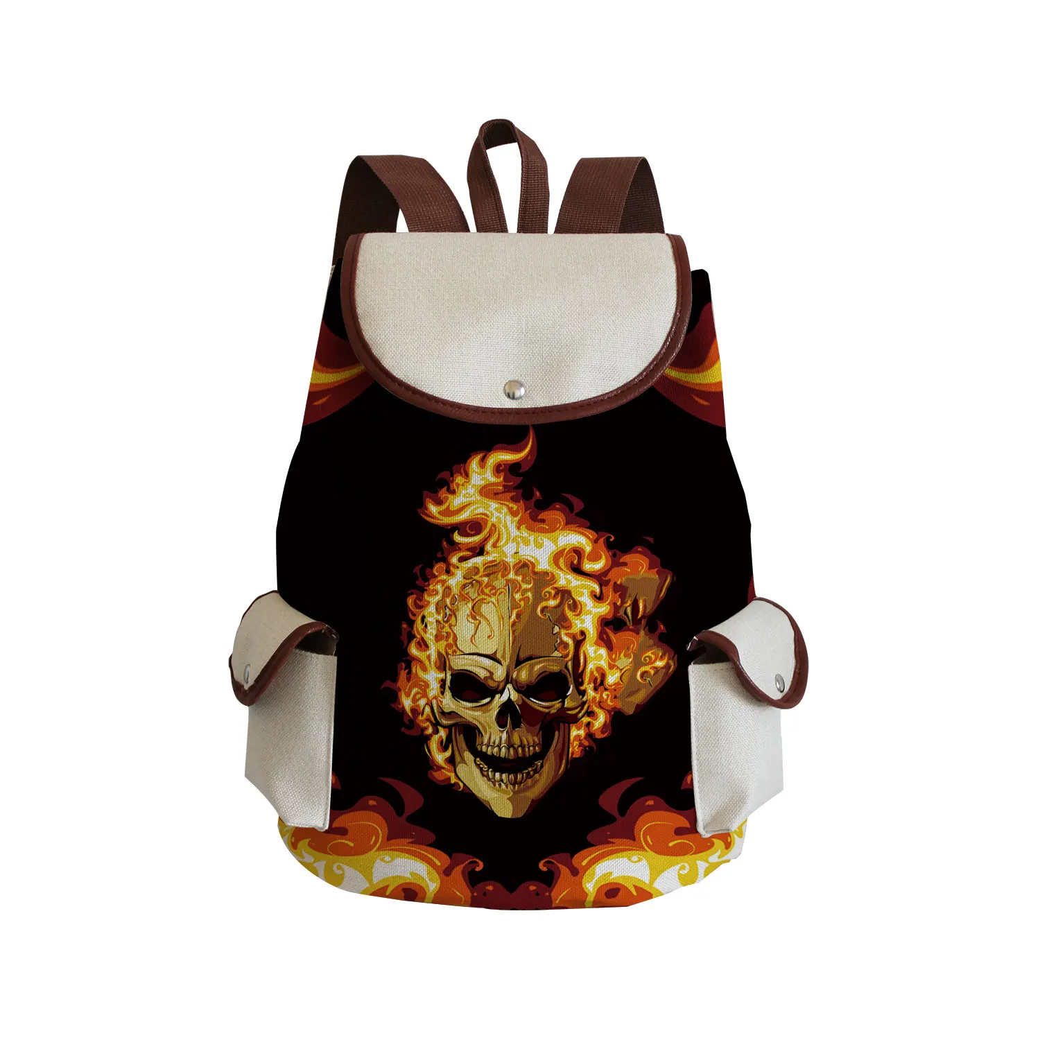 VGBjYFjIpZHere you can buy Cartoon Pattern School Backpack Flaming Skull Printed Handbag Cool Halloween Fashion Bag High Quality Linen Drawstring Backpack with free delivery to your post office.