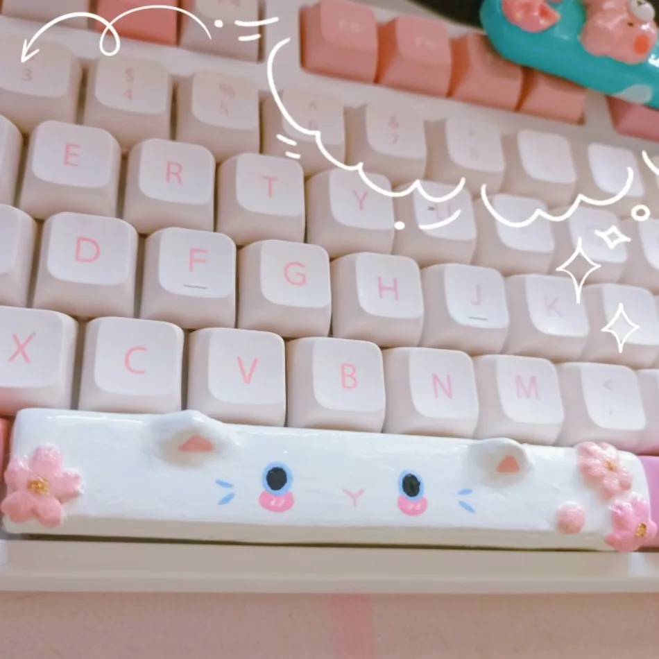 Cartoon Pink Sakura Cat Keycaps Handmade Three-dimensional Exquisite Gift Clay Key Cap 6.25u Space Bar for Mechanical Keyboards - Купить с бесплатной доставкой