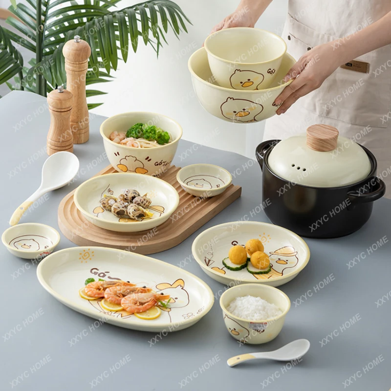 hNTgJQdaHere you can buy Cartoon Porcelain Bowl and Dish Set Household Bowl Plate Tableware Combination Cute Creative Tableware Set Dinner Plate with free delivery to your post office.