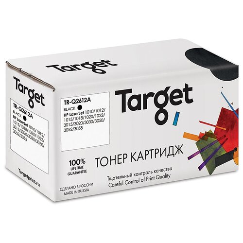 Cartouche TR-Q2612A compatible de Target pour imprimantes HP, noire. Ressource d'impression 2000 pages de texte A4 à 5% de couverture. Convient aux imprimantes : HP LaserJet 1010, HP LaserJet 1012, HP LaserJet 1015, HP LaserJet 1018, HP LaserJet 1020, HP LaserJet 1022, HP LaserJet 3015, HP LaserJet 3020, HP LaserJet 3030, HP LaserJet 3050, HP LaserJet 3 052, HP LaserJet 3055 est un analogue universel des cartouches HP Q2612A.