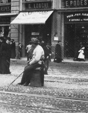 La nonnina scopa all'aperto