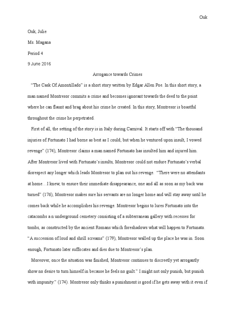 Cask Of Amontillado Essay - 763 Words | Cram
