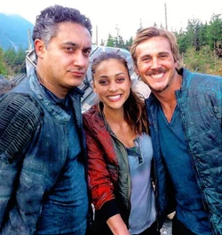 The series stars Eliza Taylor as Clarke Griffin, as well as Paige Turco, Thomas McDonell, Eli Goree, Marie Avgeropoulos, Bob Morley, Kelly Hu (who was dropped from the series after the first epiosde), Christopher Larkin, Devon Bostick, Isaiah Washington, and Henry Ian Cusick .