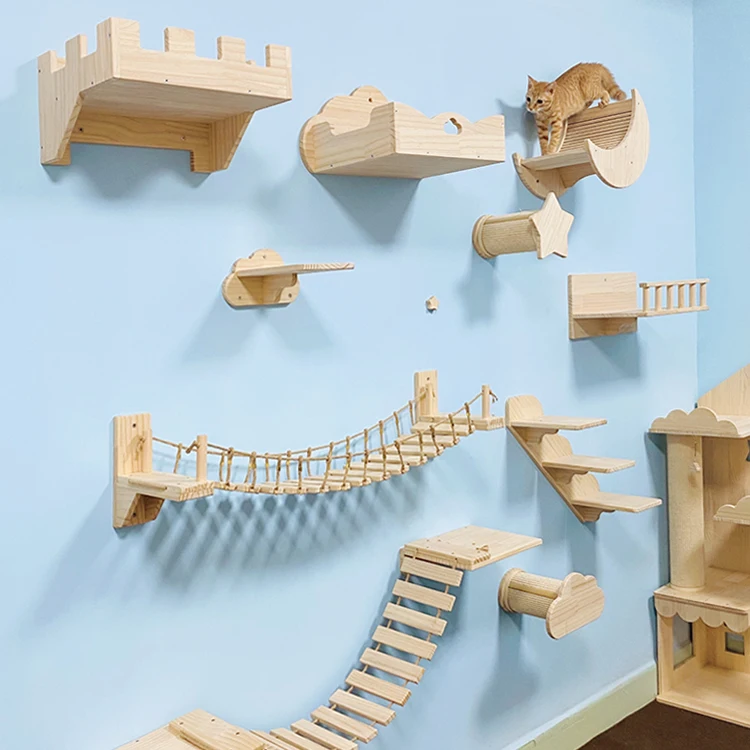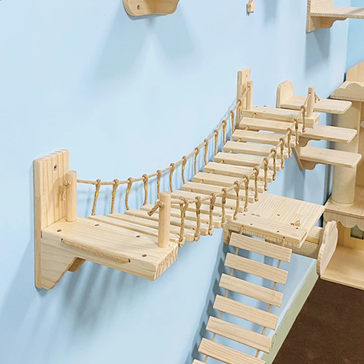 Cat Suspension Bridge Rope Ladder Hemp Rope Rope Ladder Wall Hanging Solid Wood Cat Wall Small Cat Climbing Frame Original - Купить с бесплатной доставкой