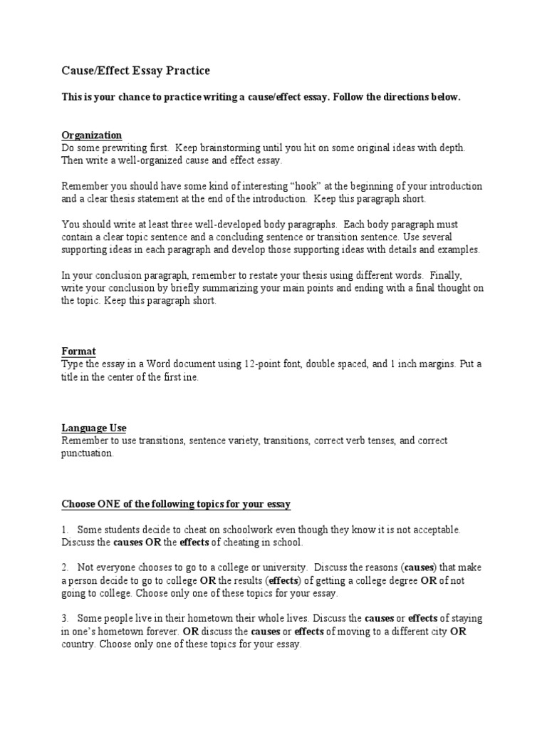 Cause And Effect College Essay