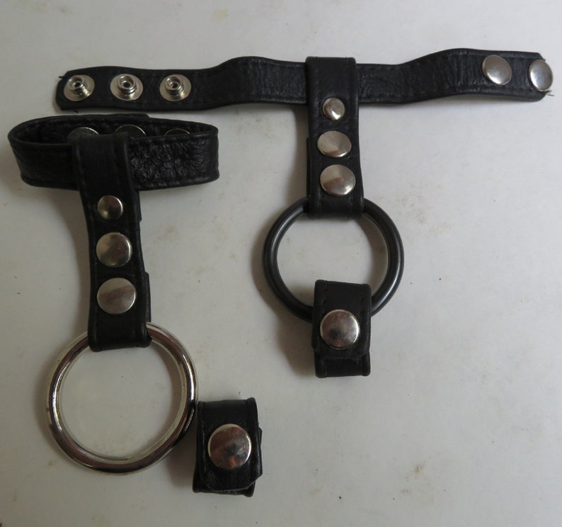 The Bondage Boutique T-Style Cock Ring with Ball Divider is an intriguing bit of servitude gear. It’s made of dark artificial calfskin with snap fastens so you can change the snugness.