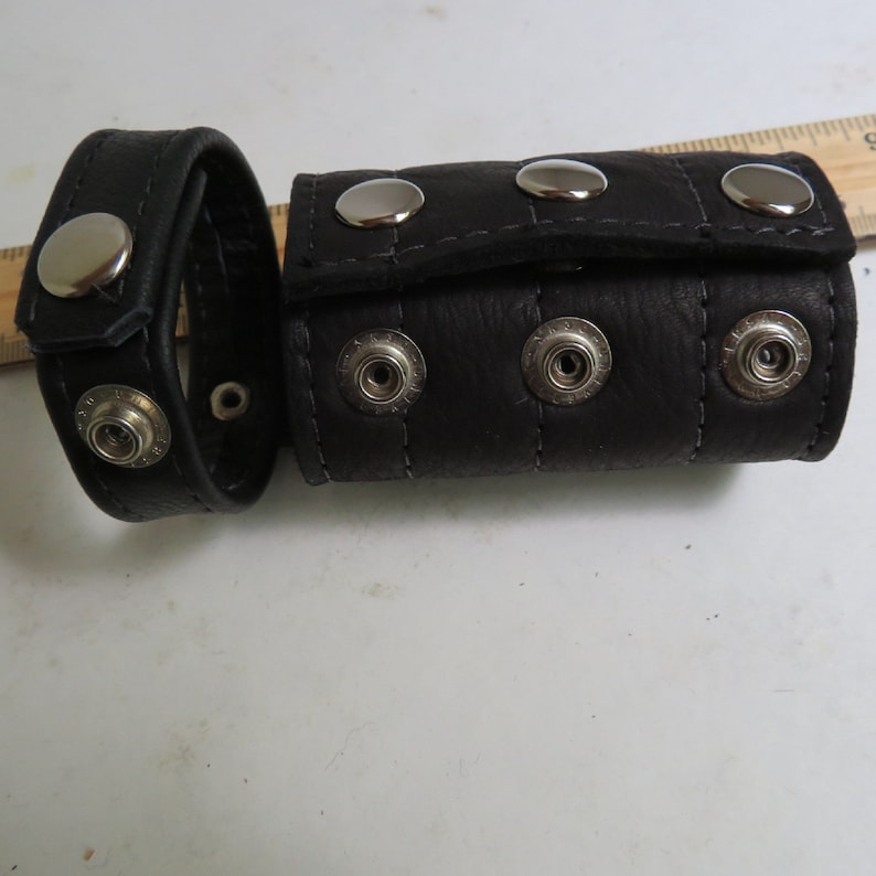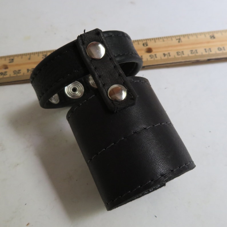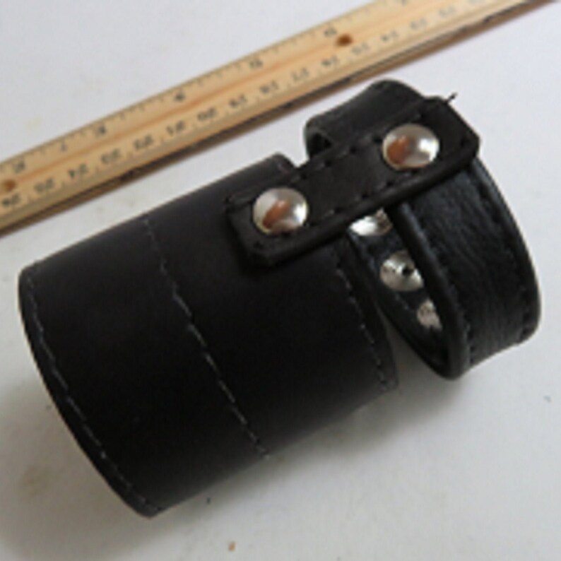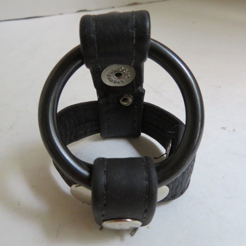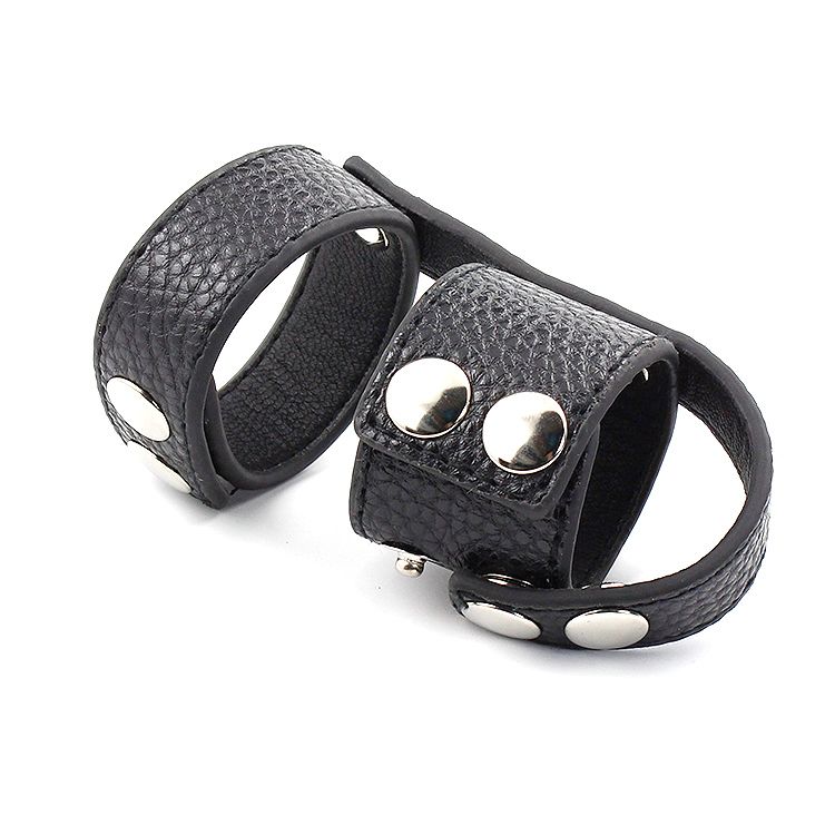 The Bondage Boutique T-Style Cock Ring with Ball Divider is an intriguing bit of subjugation gear. It’s made of dark false cowhide with snap fastens so you can change the snugness.