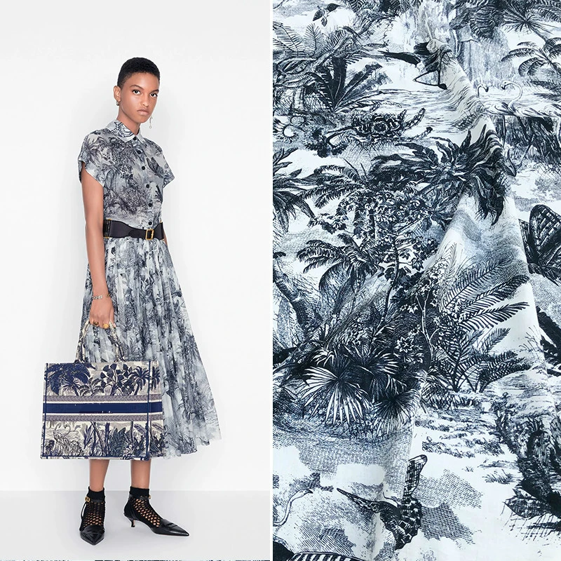Plant Flowers Knitted Mink Fabric Europe and America Style Fabrics by Meter for Dresses Shirts Home Textile for Sewing Material