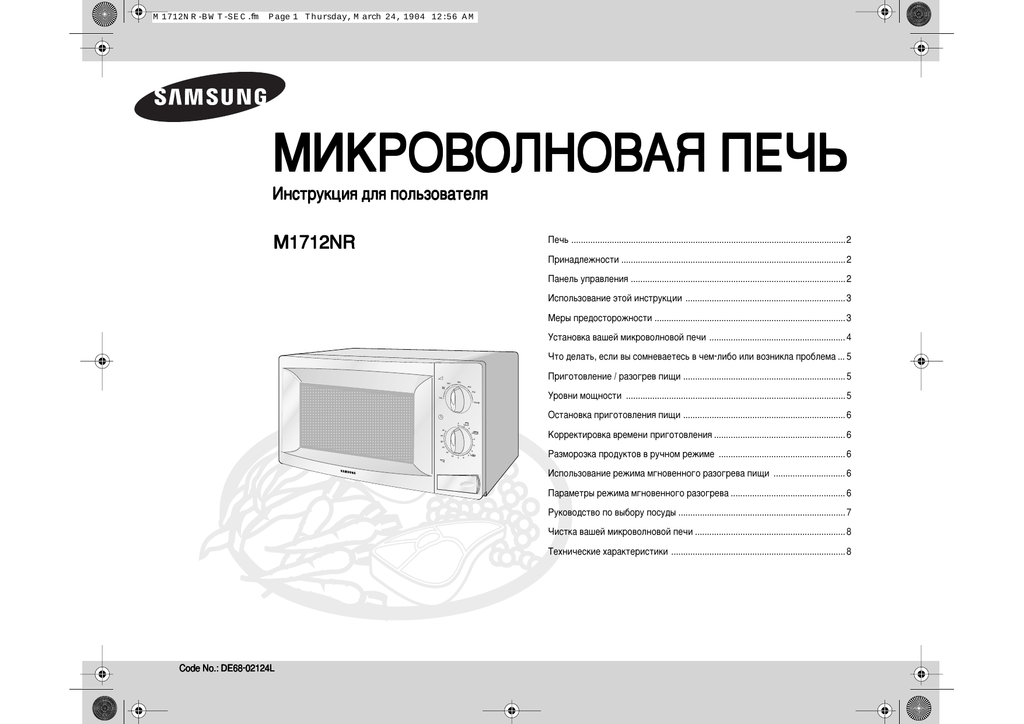 Инструкция (manual) к СВЧ (микроволновой) печи SAMSUNG . . .