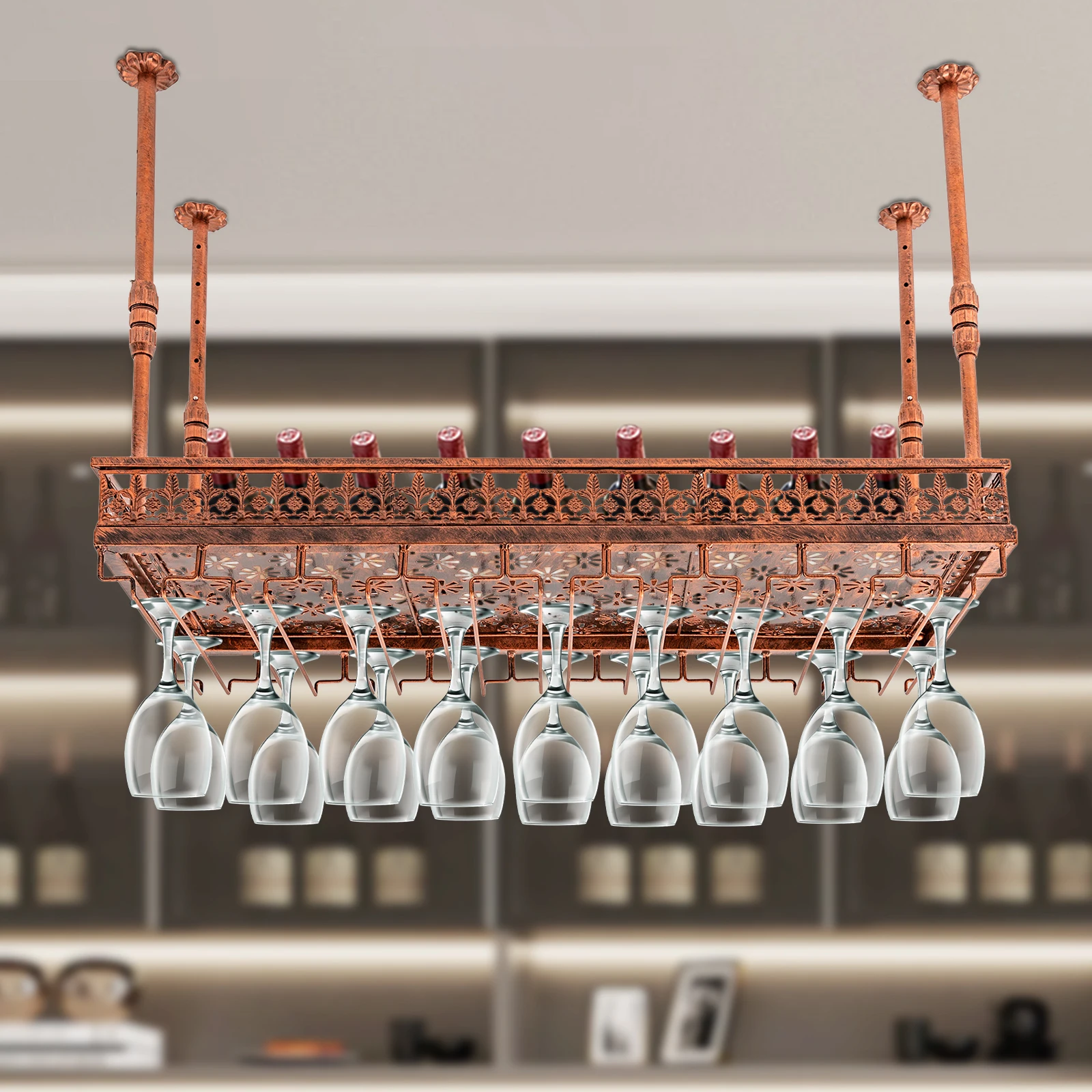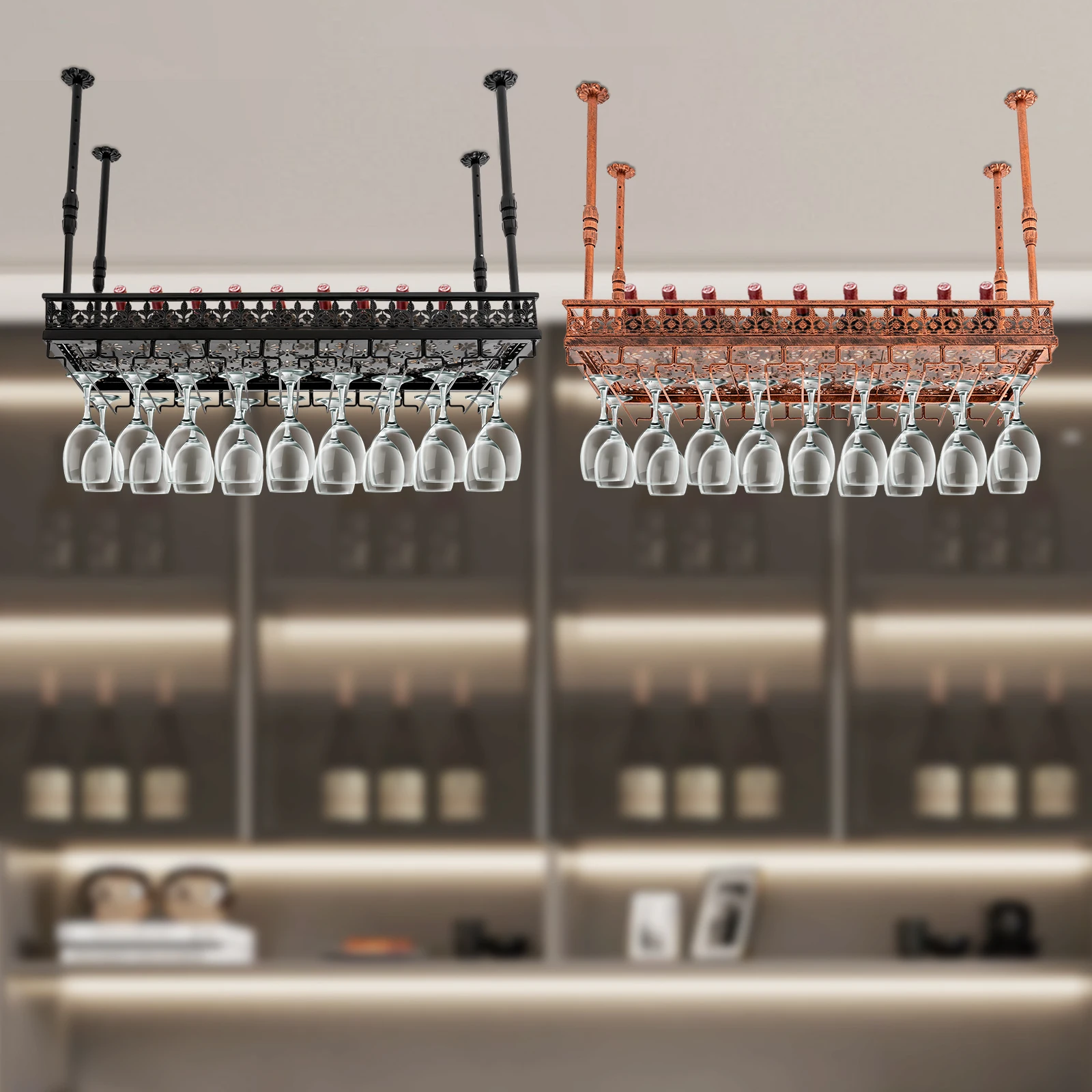 amzMHrqgcHere you can buy Ceiling Wine Glass Rack Hanging Wine Glass Rack Height Adjustable Hanging Wall-Mounted Perfect for Bar Cafe(90cm) with free delivery to your post office.