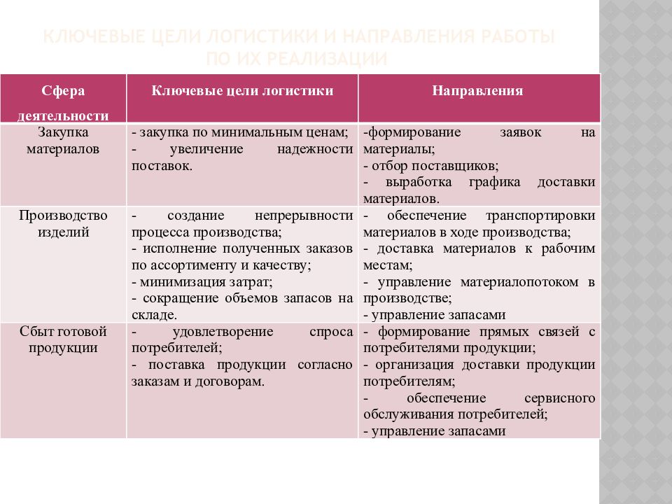 Цель логистического процесса это