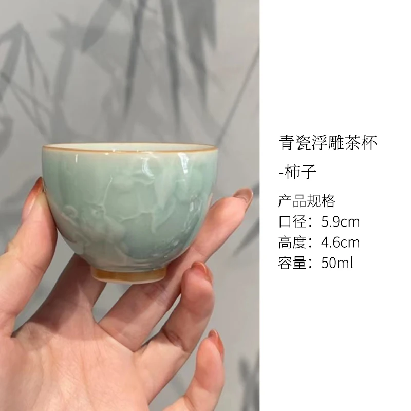 LZGqbZfdhHere you can buy Celadon Relief Craft Persimmon Tea Cup Tea Set Master Cup Kung Fu Tea Set Persimmon Ruyi with free delivery to your post office.