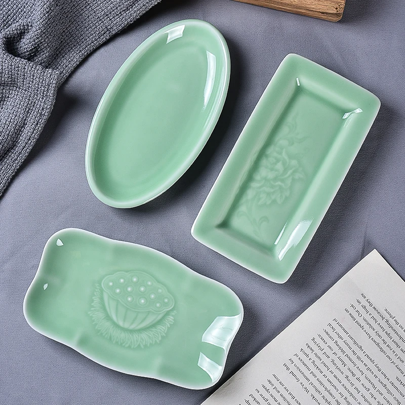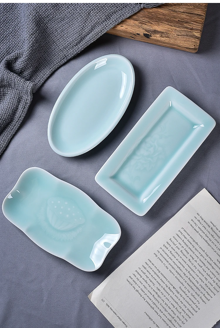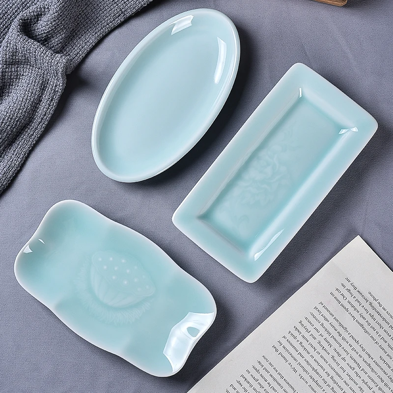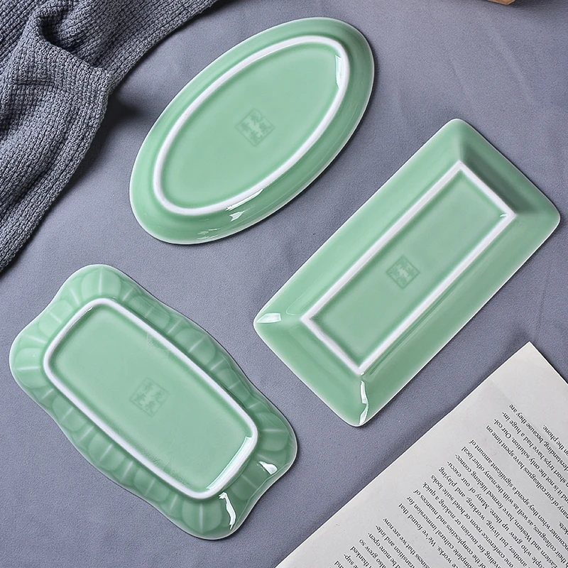 UtVAbErTHere you can buy Celadon Saucer Dim Sum Dish Ceramic Towel Rack Soap Holder Creative Rectangle Small Plate Tableware with free delivery to your post office.