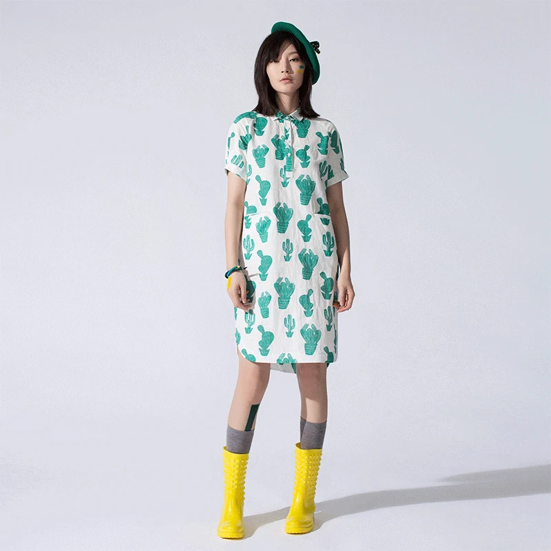 Цельнокроеное платье с коротким рукавом и воротнико…