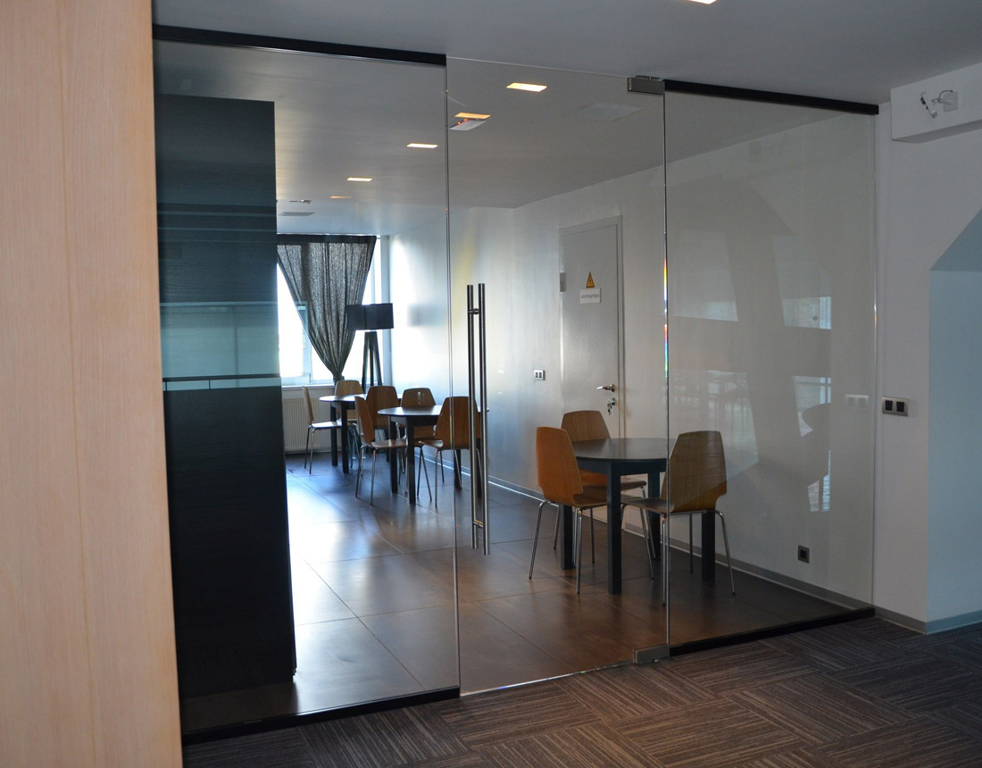 Цельностеклянные перегородки двери