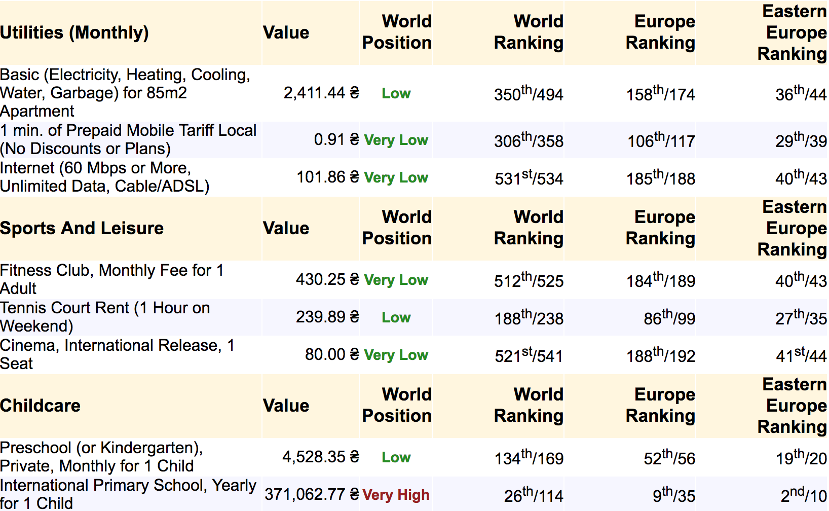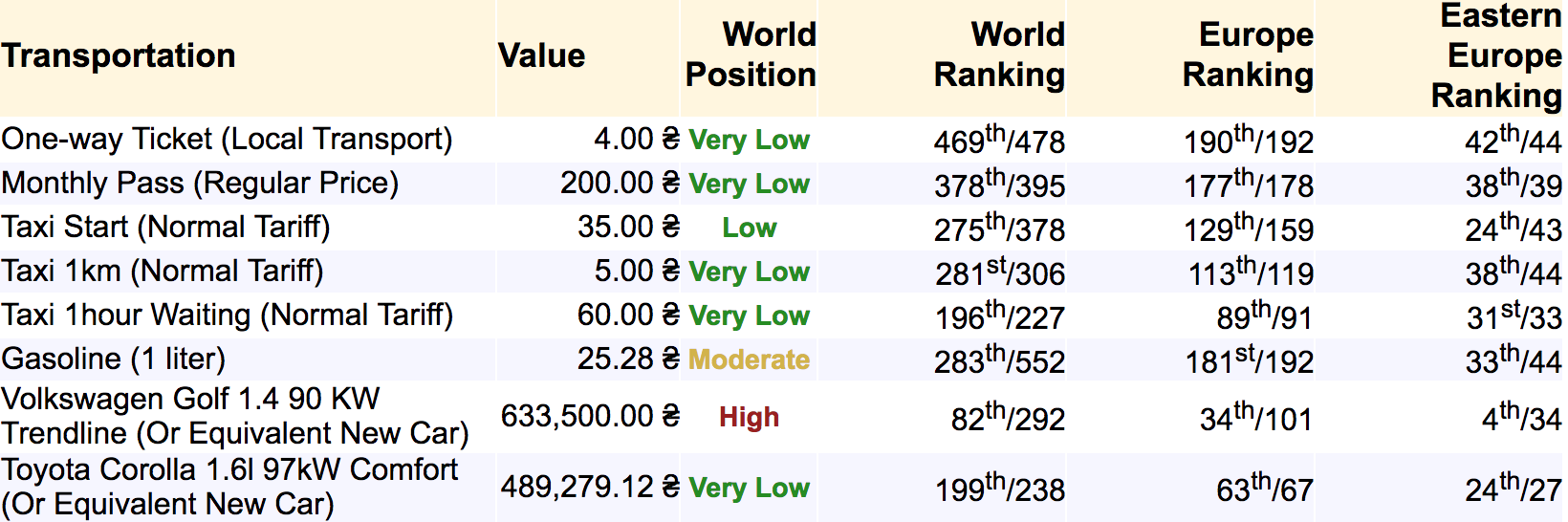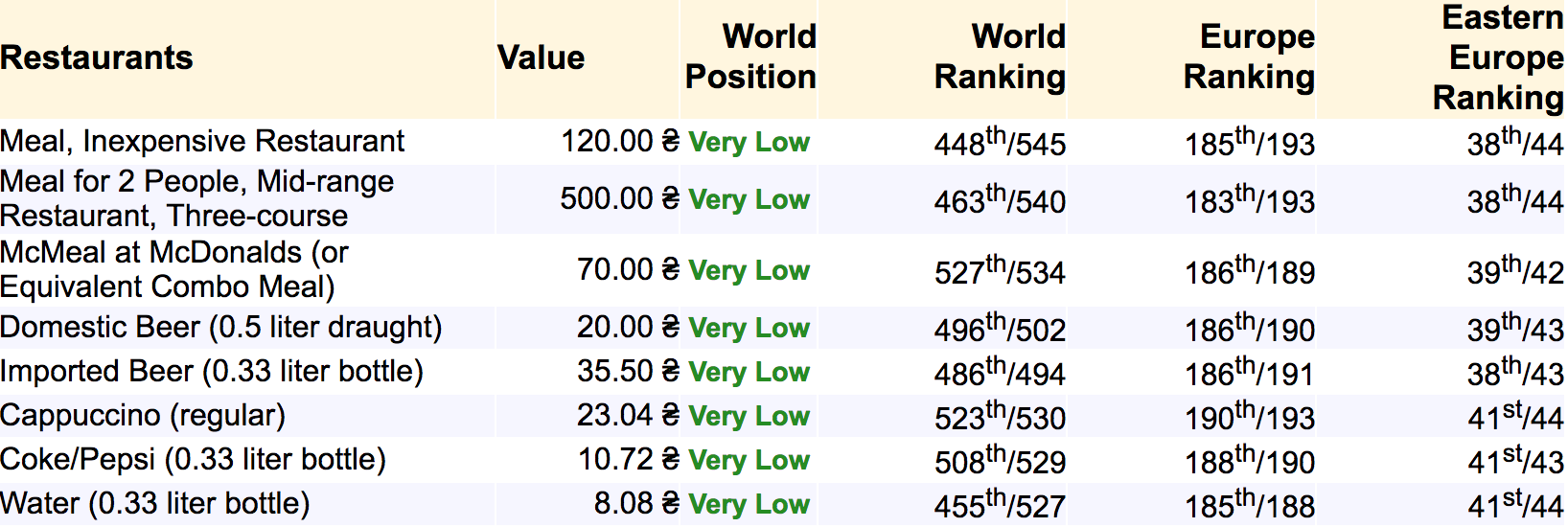 По большинству позиций, Киев один из самых дешевых городов мира: