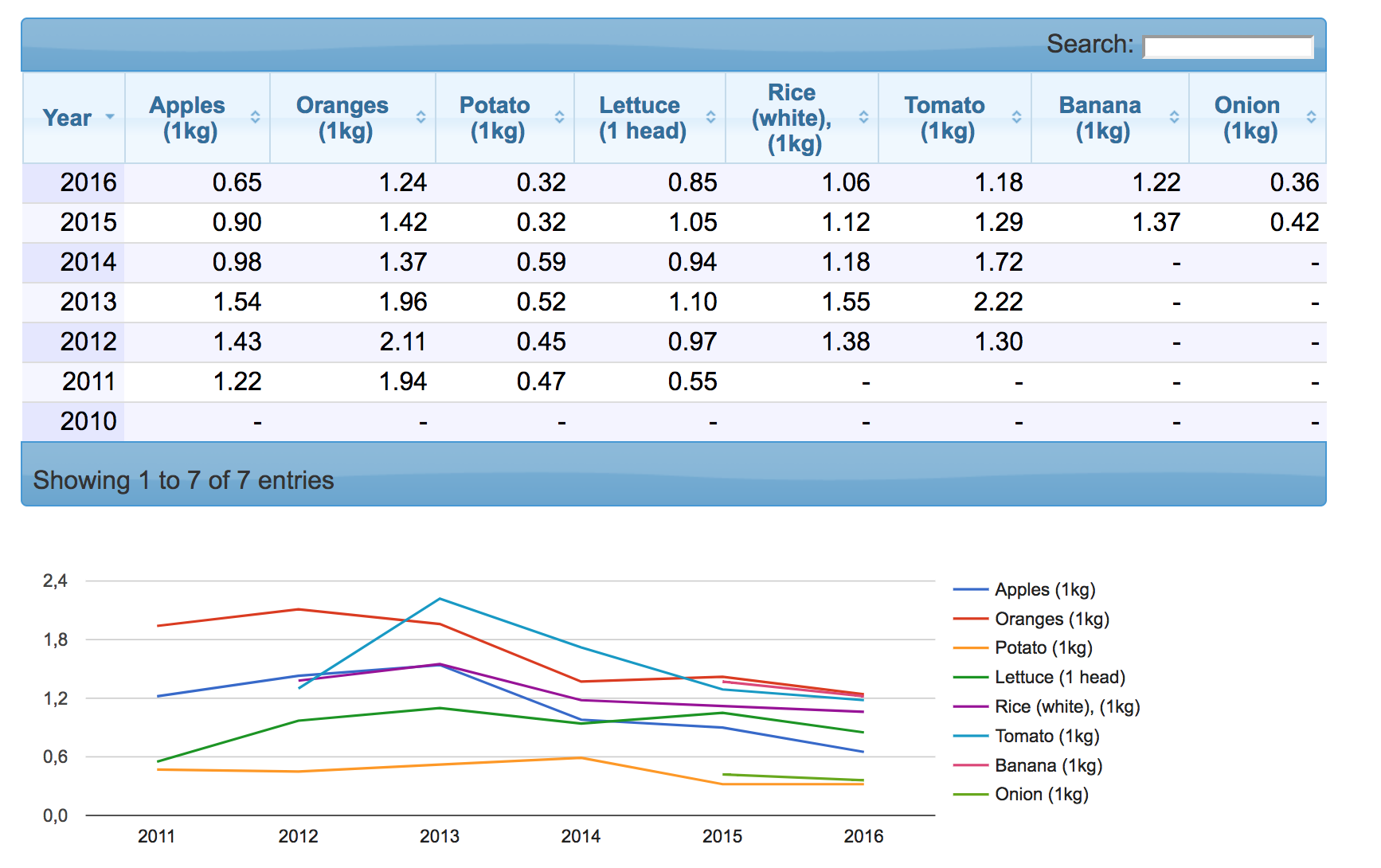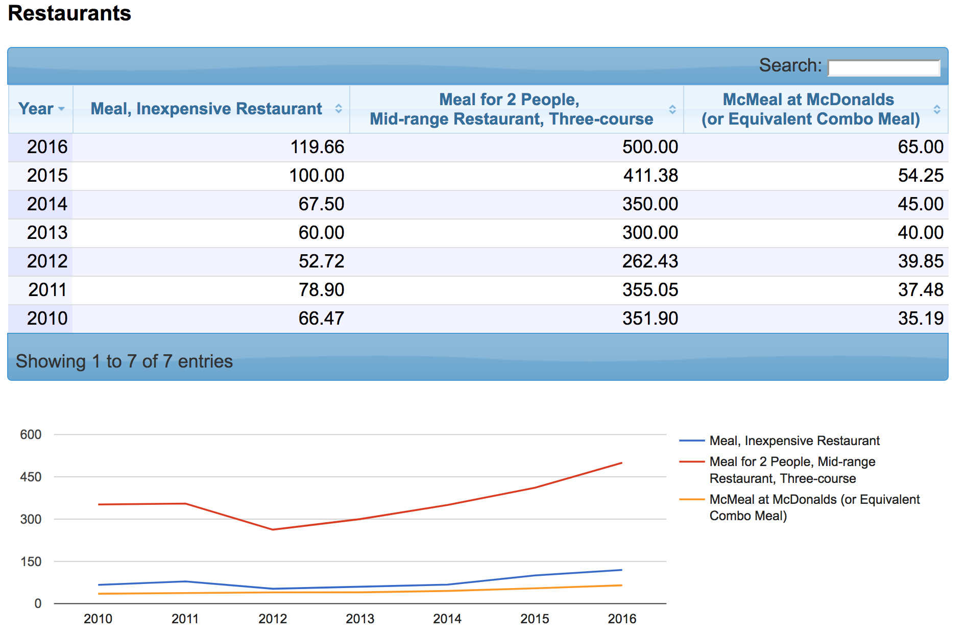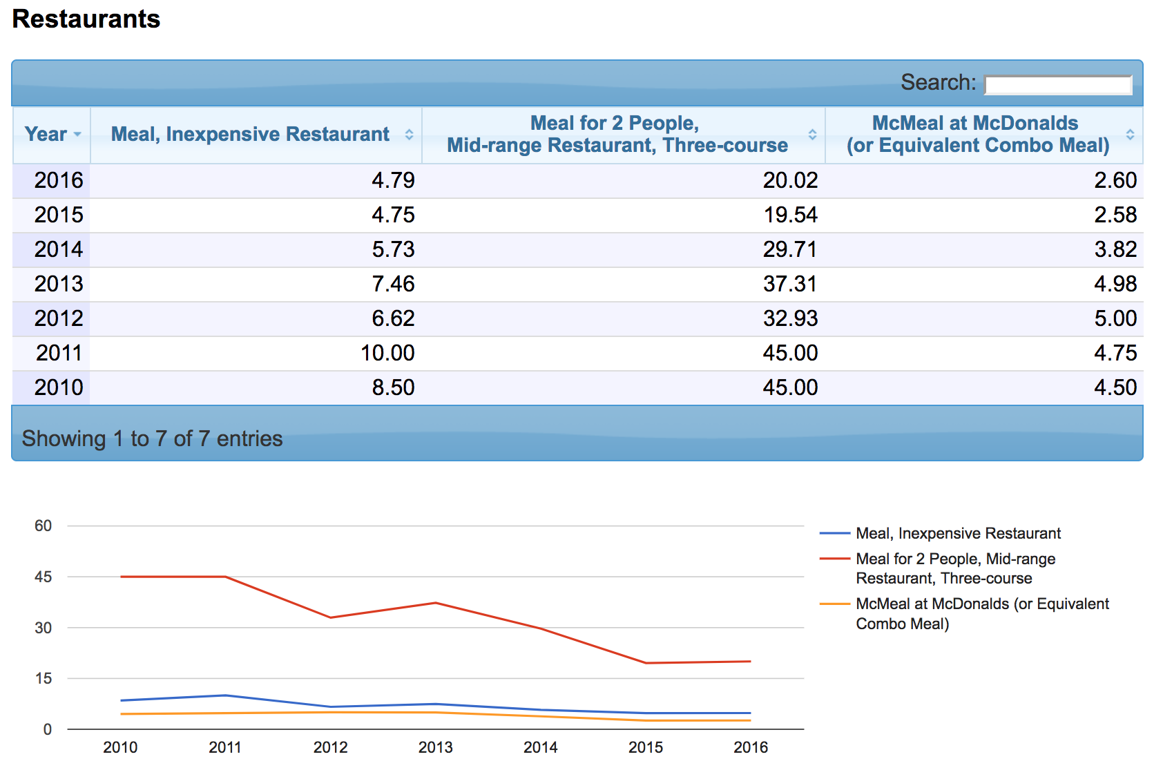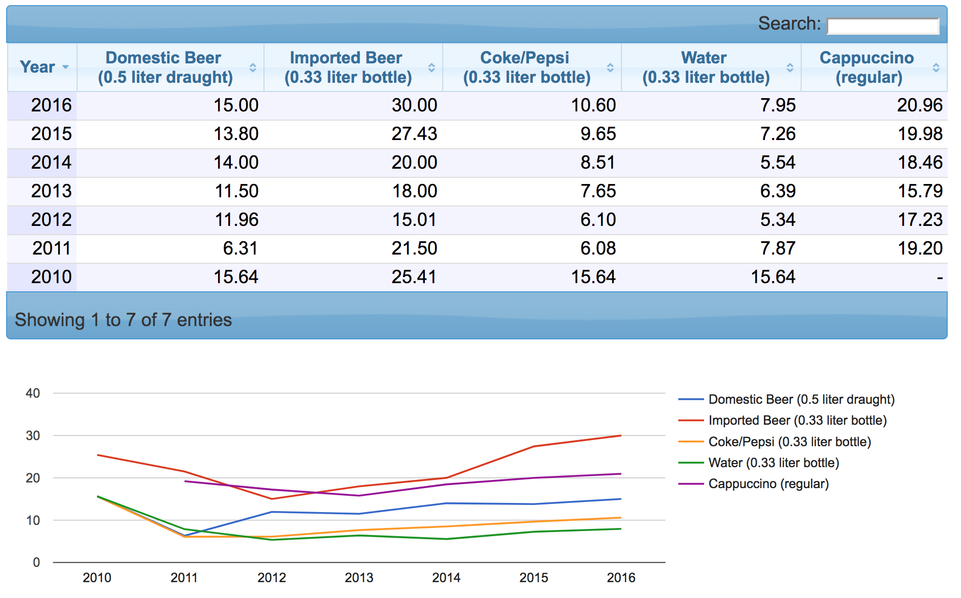 Как мы видим, цены за последние 7 лет действительно "растут". И не только мясо. Вот, к примеру, цены на напитки и продукты питания: