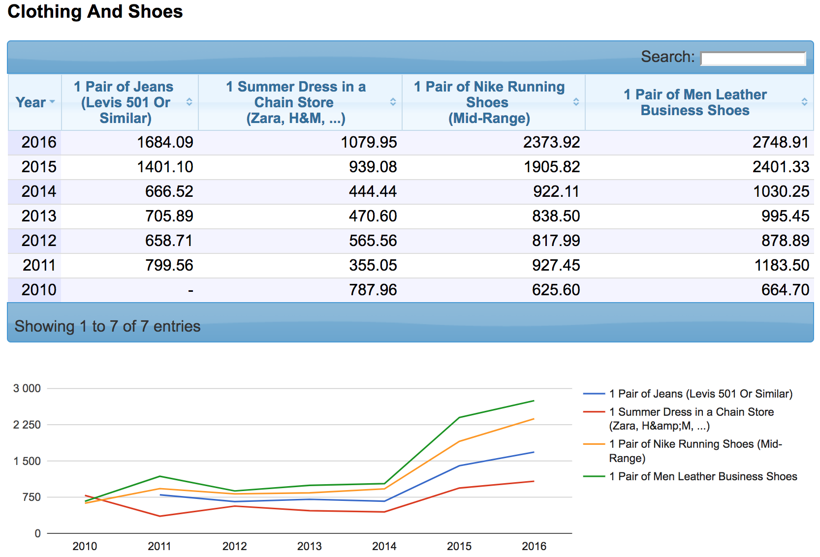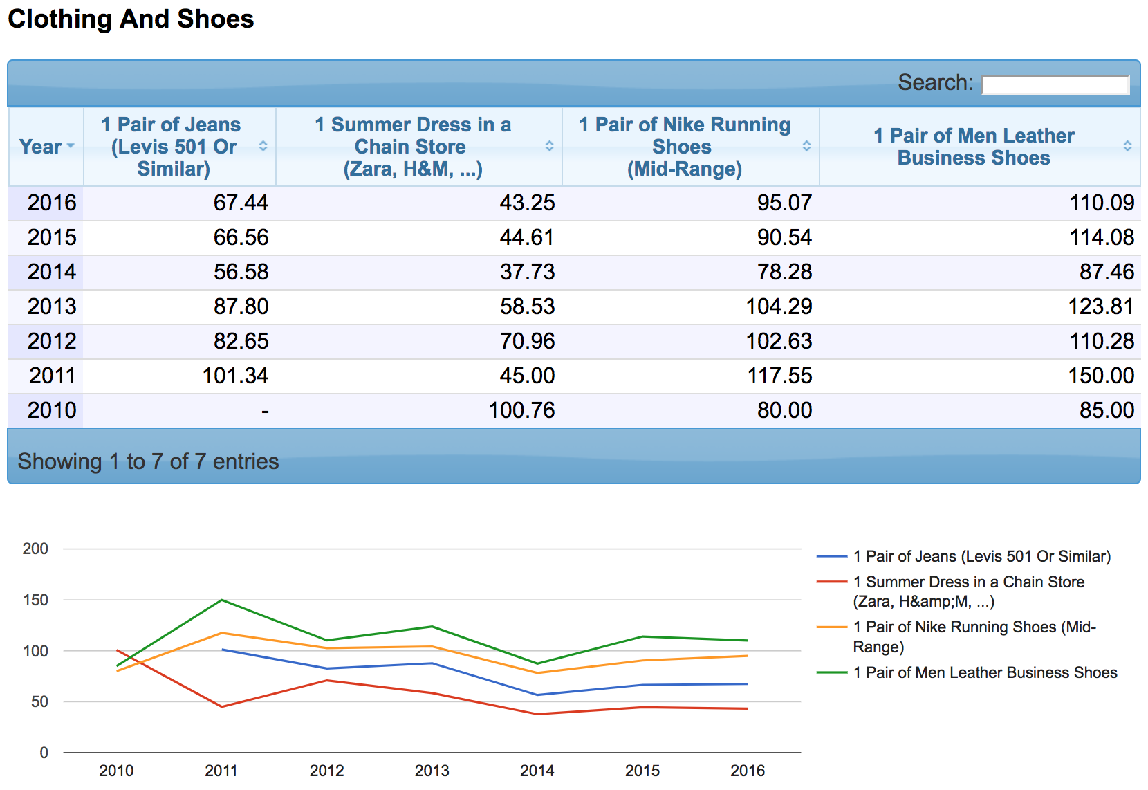 А вот так выглядят цены на ту же одежду и обувь, но в долларе США:
