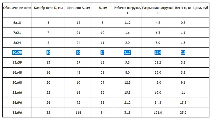 Цепь разрывная нагрузка