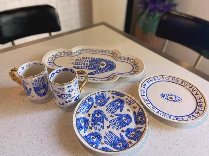 Ceramic Hand Eye Mugs and Plates Gold Rim Decorative Kitchen Home Tableware Personalized Coffee Tea Cups Handmade Creative Gifts - Купить с бесплатной доставкой