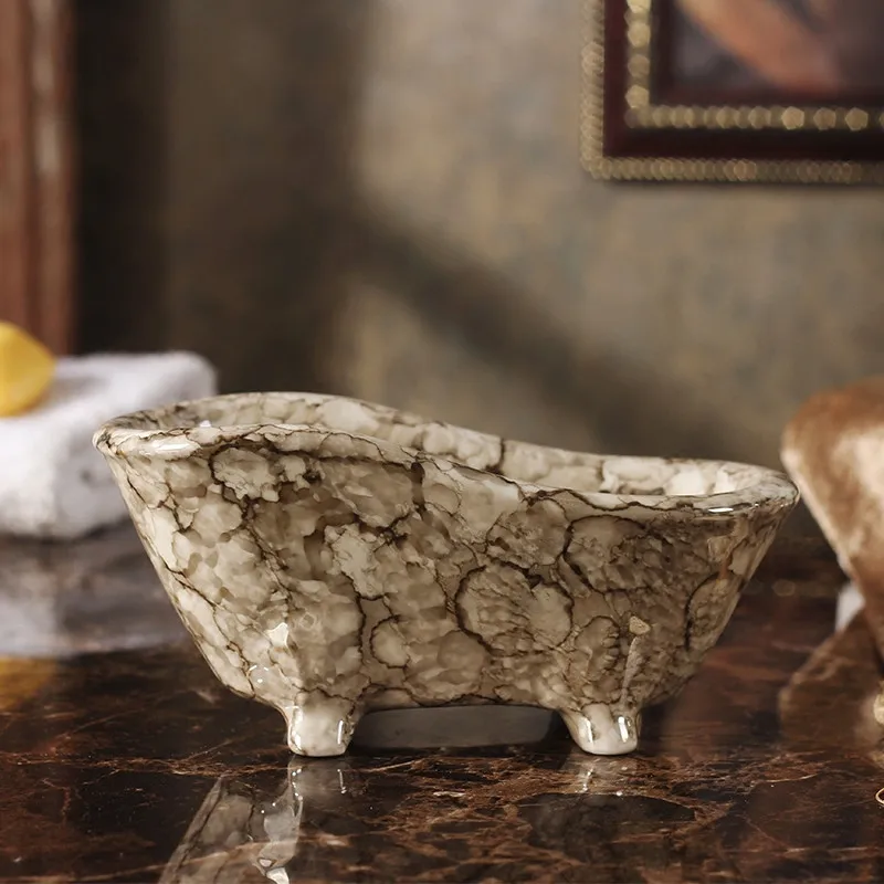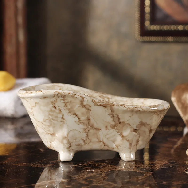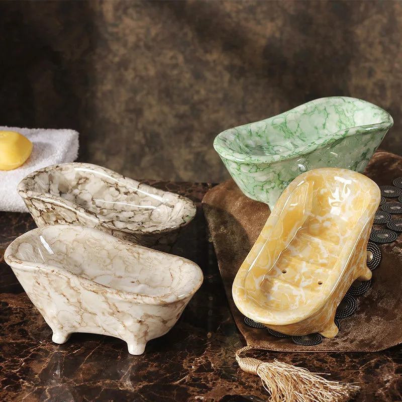 HxsVURqOHere you can buy Ceramic Soap Dishes Marble Pattern Shower Case Container Storage Box Bathroom Accessories Handmade Bath Tub Shape Free shipping with free delivery to your post office.