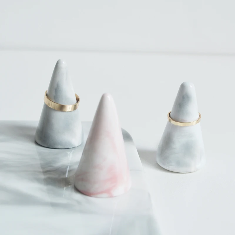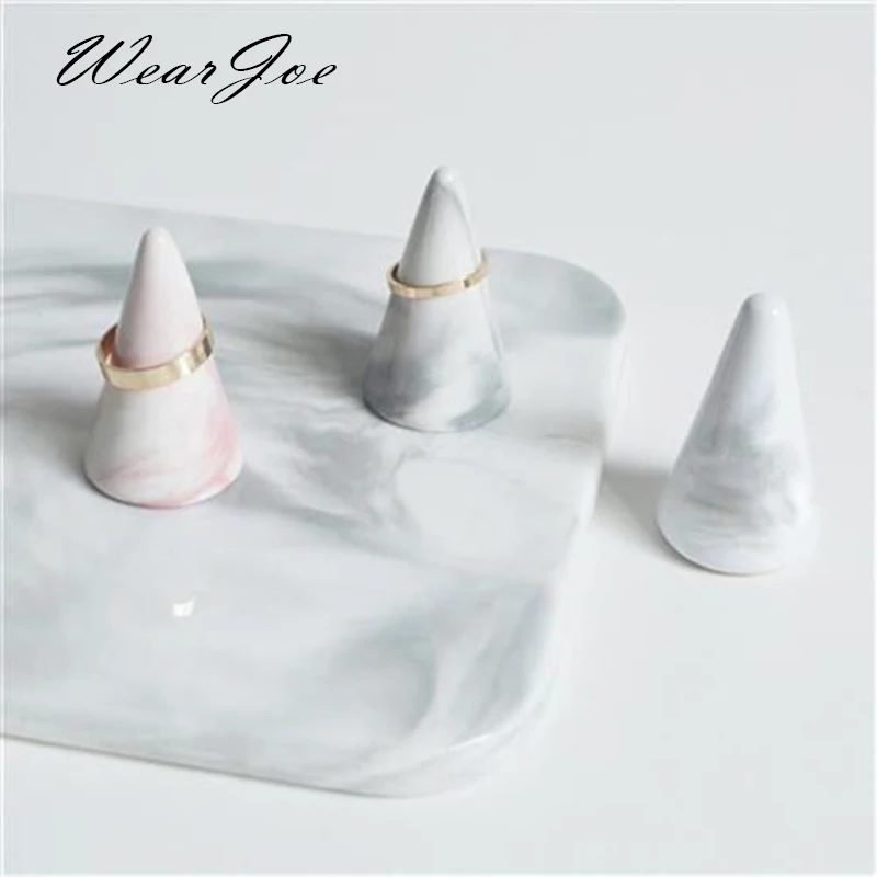 Ceramic Solid Finger Ring Holder Stand Conical Bague Display Rack Dressing Desktop Marble Decor Ring Jewelry Support Organizer - Купить с бесплатной доставкой