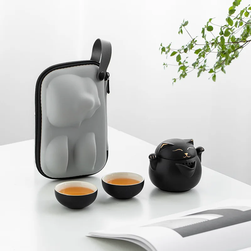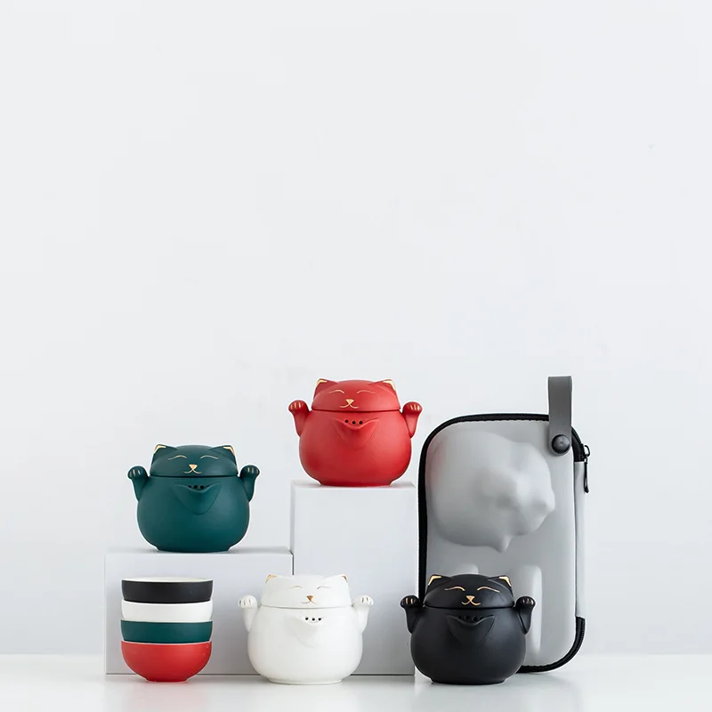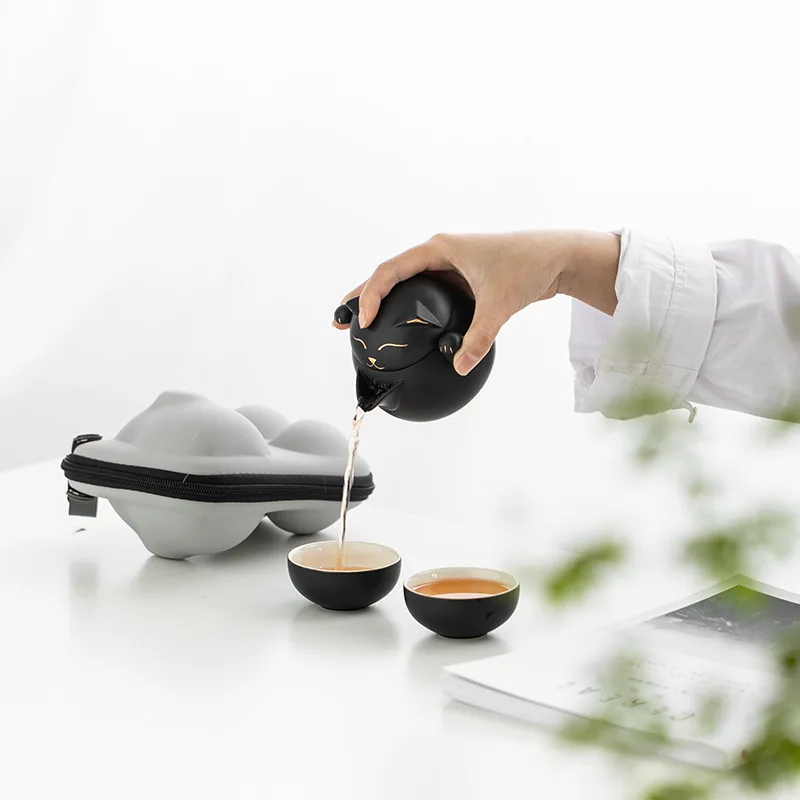 "Ceramic Teapot with 2 Cups Cute Cat Portable Travel Tea Sets Retro Teaware Tea Set Trend Designer Gift Set For Friend" * Buy Now With Free Shipping Just For $62