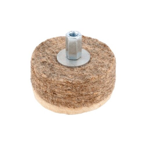 Utilisé pour polir la peinture des voitures. Fabriqué à partir de feutre de laine grossière. Equipé d'une tige cylindrique d'un diamètre de 6 mm pour une installation dans un mandrin de perçage. Livré dans un sachet plastique individuel. Diamètre du cercle – 60 mm. L'épaisseur du cercle est de 40 mm. Fabriqué en Russie.