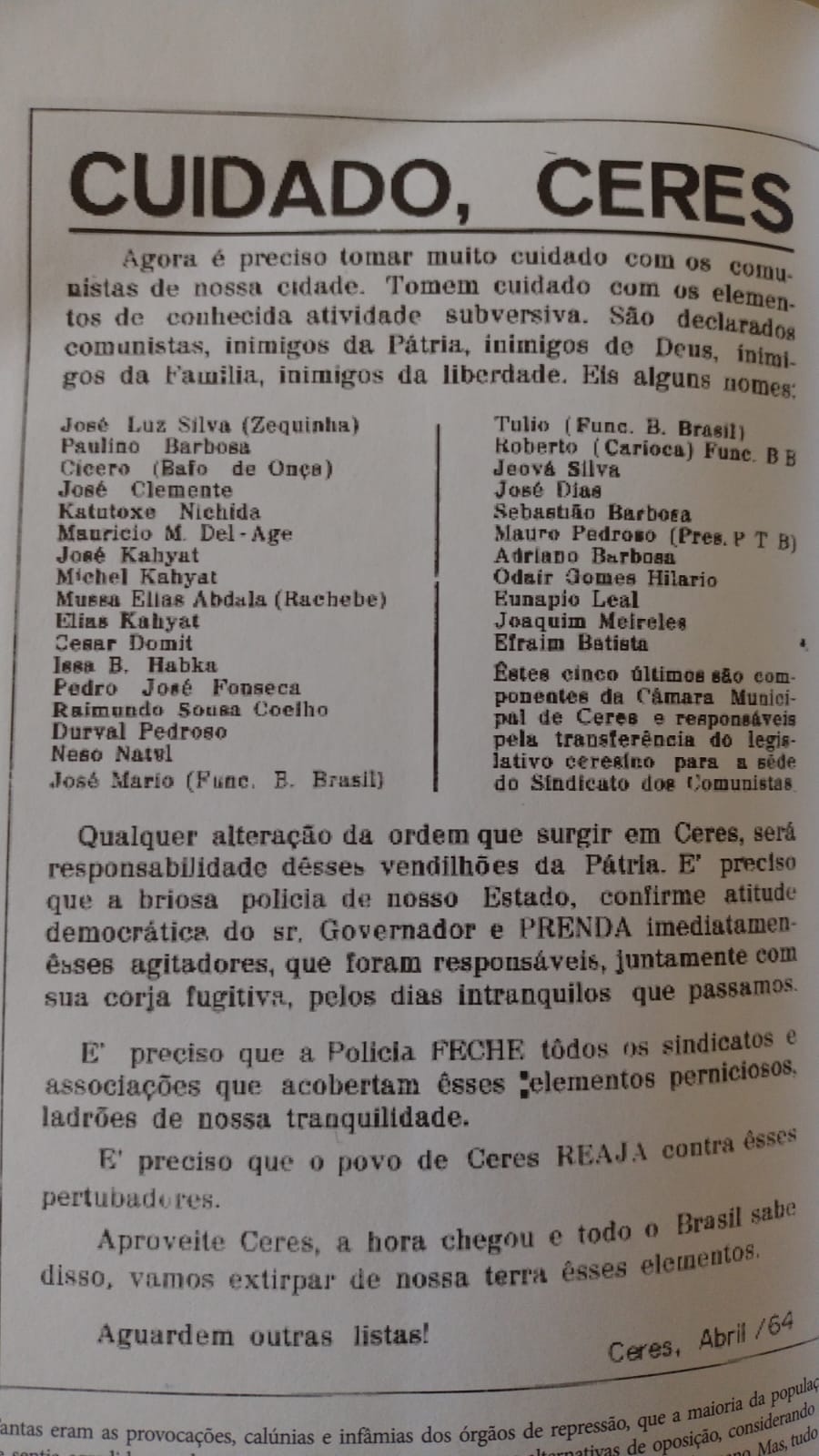 Ceres e o Golpe Militar