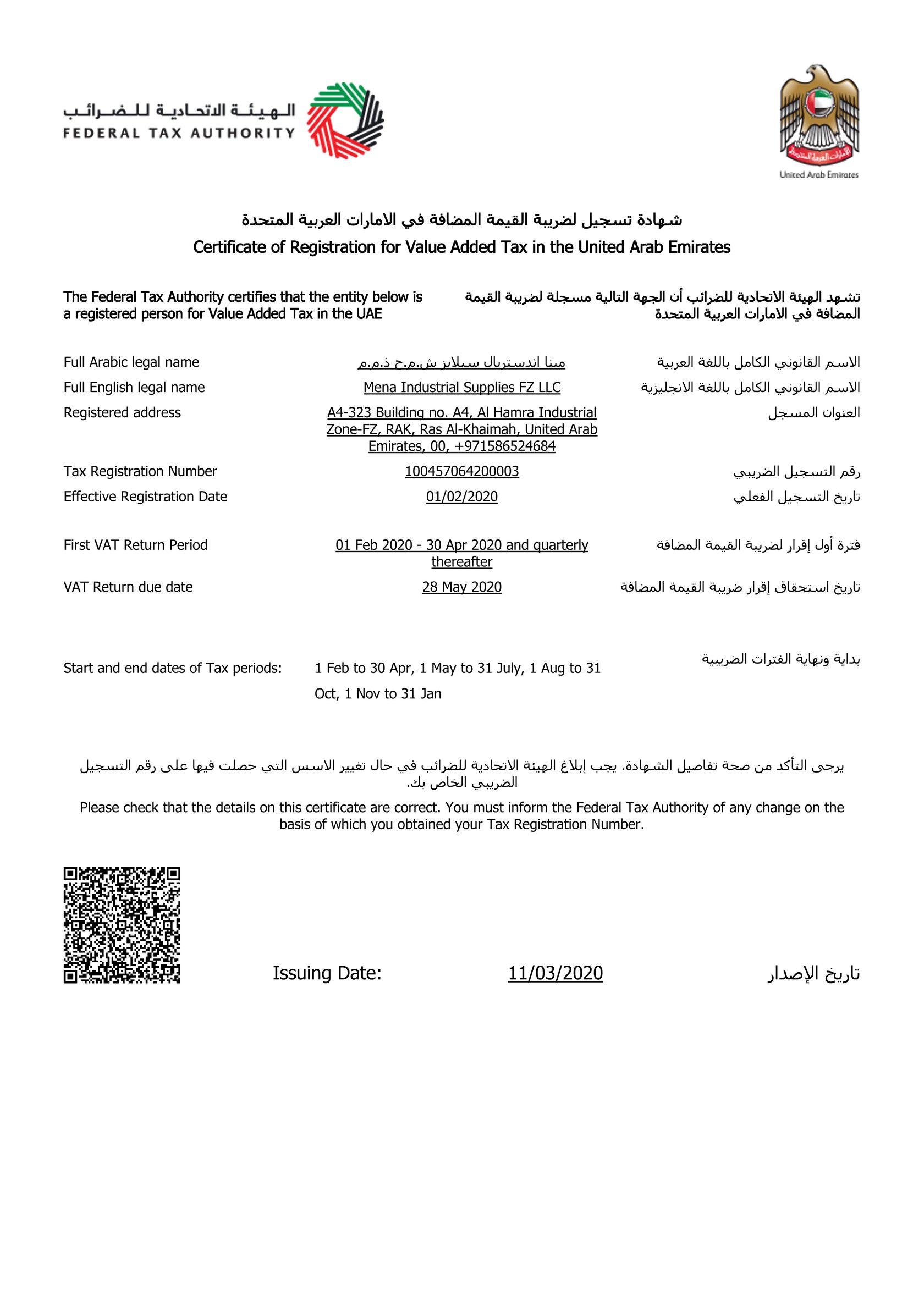 Cert number