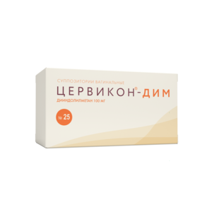 Препарат Цервикон ® -ДИМ не оказывает влияние на способность управлять транспортными средствами и механизмами . Форма выпуска Суппозитории вагинальные, 100 мг . По 5 или 10 суппозиториев в контурной ячейковой упаковке из пленки поливинилхлоридной . По 5 контурных ячейковых упаковок №5 вместе с инструкцией по применению помещают в пачку из картона .