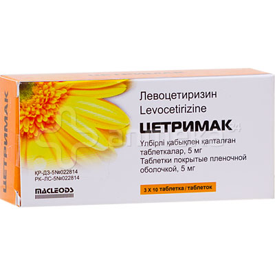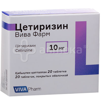 МНН: Цетиризин Цены в аптеках Алматы 600 - 1 320 〒 Где купить Состав • Описание • Фармакотерапевтическая группа • Фармакологические свойства • Показания к применению • Способ применения и дозы • Побочные действия • Противопоказания • Лекарственные взаимодействия • Особые указания • Беременность и лактация •