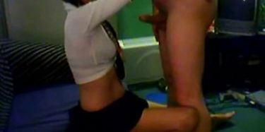 Giving boyfriend quick blowjob swallow
