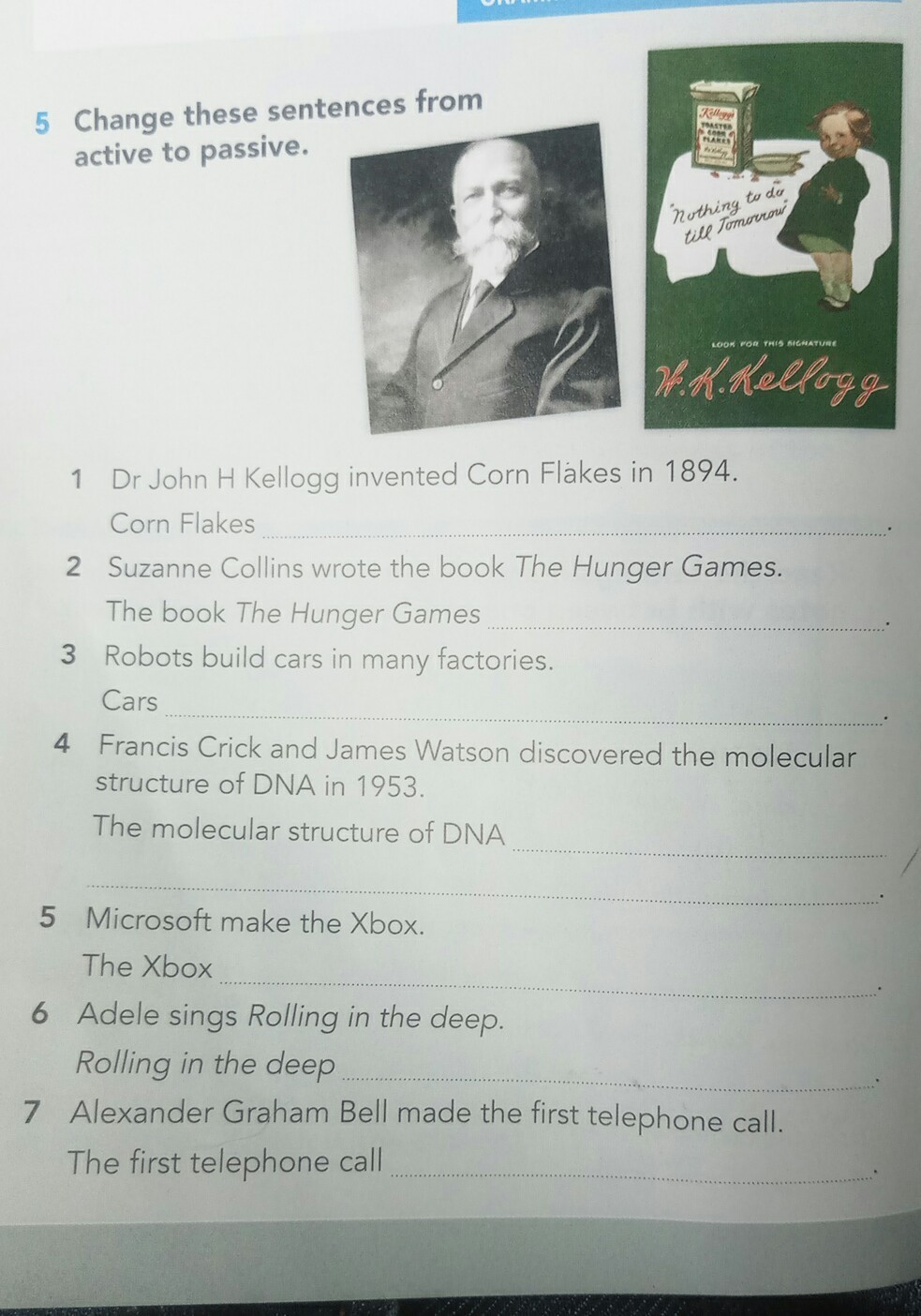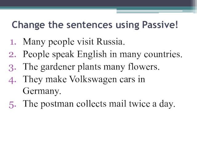 Change the sentences to use passive structures