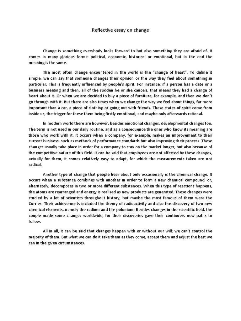 Essay about change Free Essay Example - StudyMoose