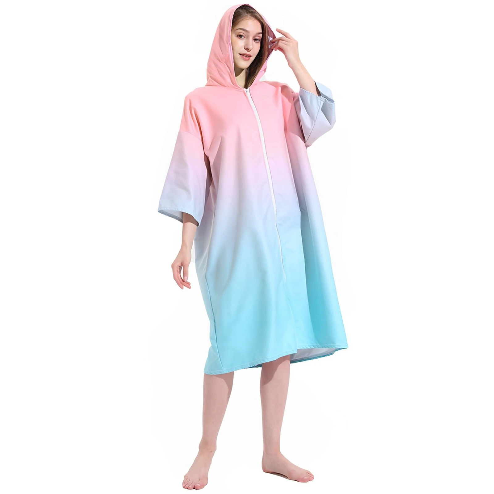 HVFCcxhaOHere you can buy Changing Robe with Hood Microfiber Towel Poncho Robe with Zipper Short Sleeve Surf Poncho Oversized Changing Towel Robe Quick with free delivery to your post office.