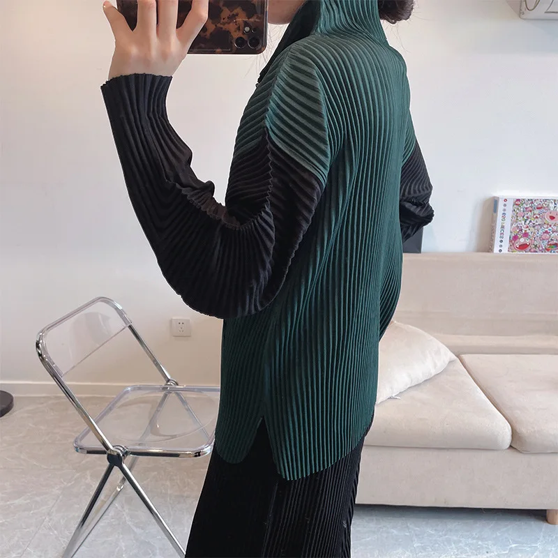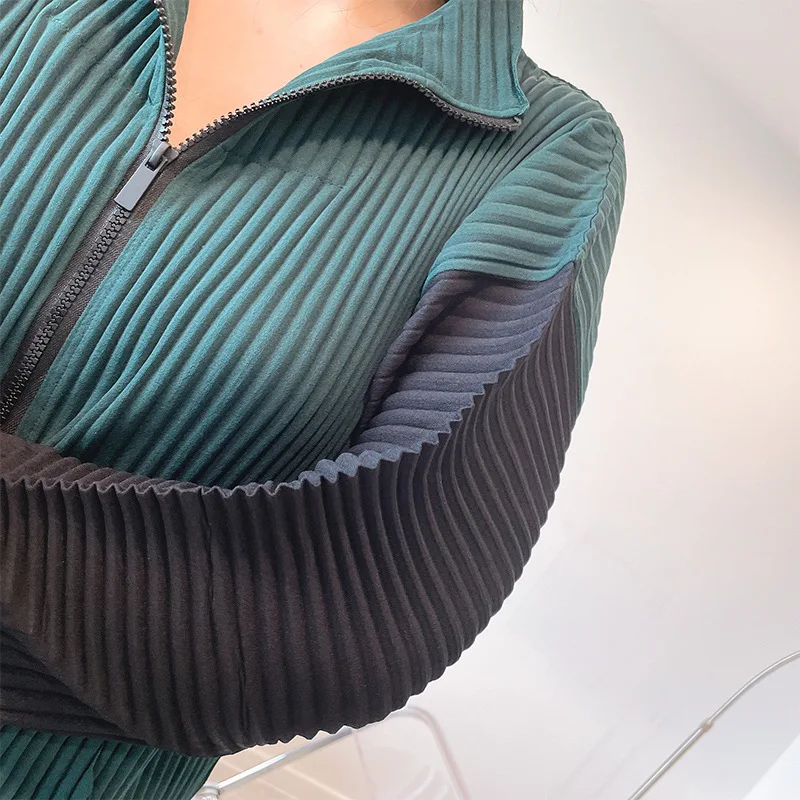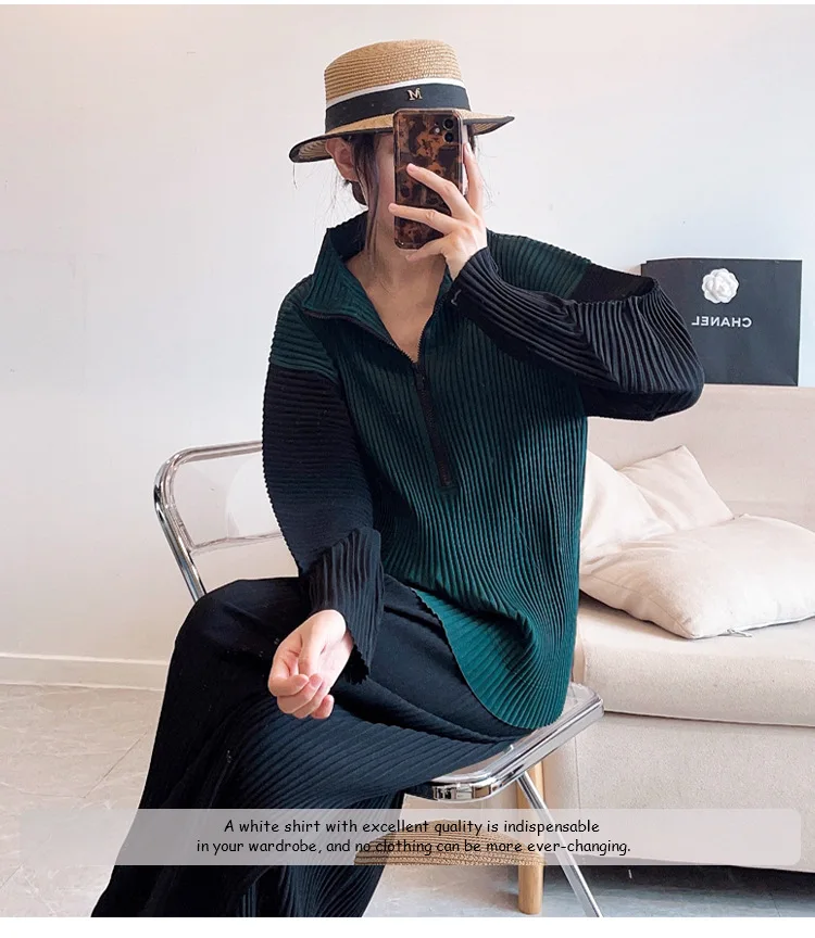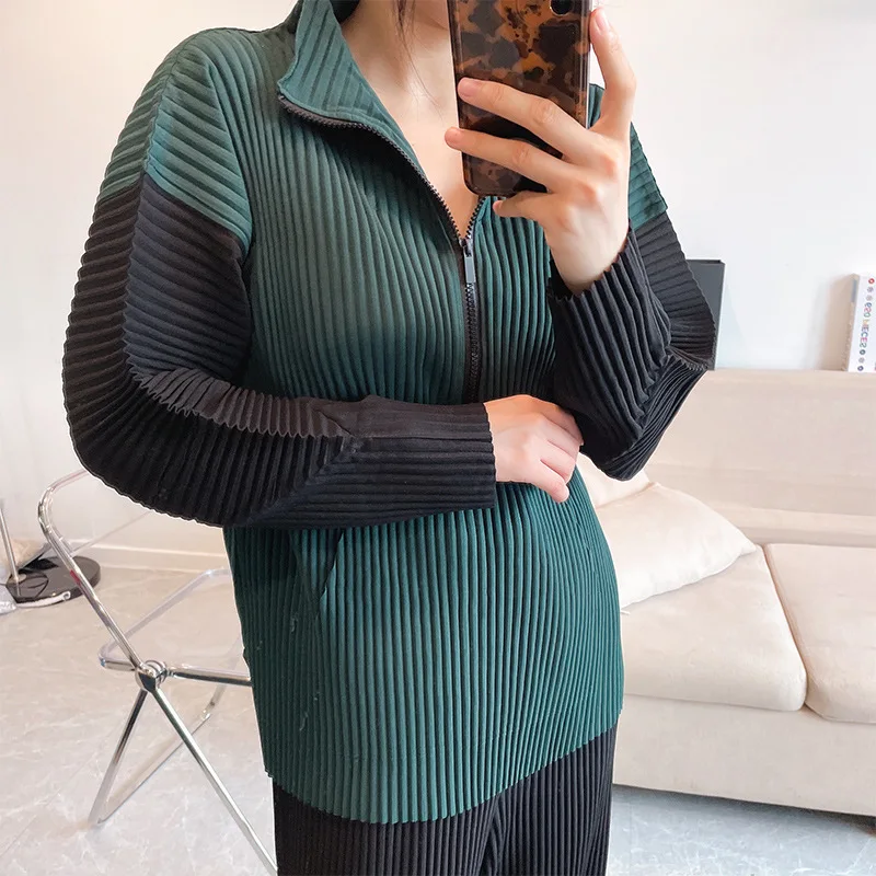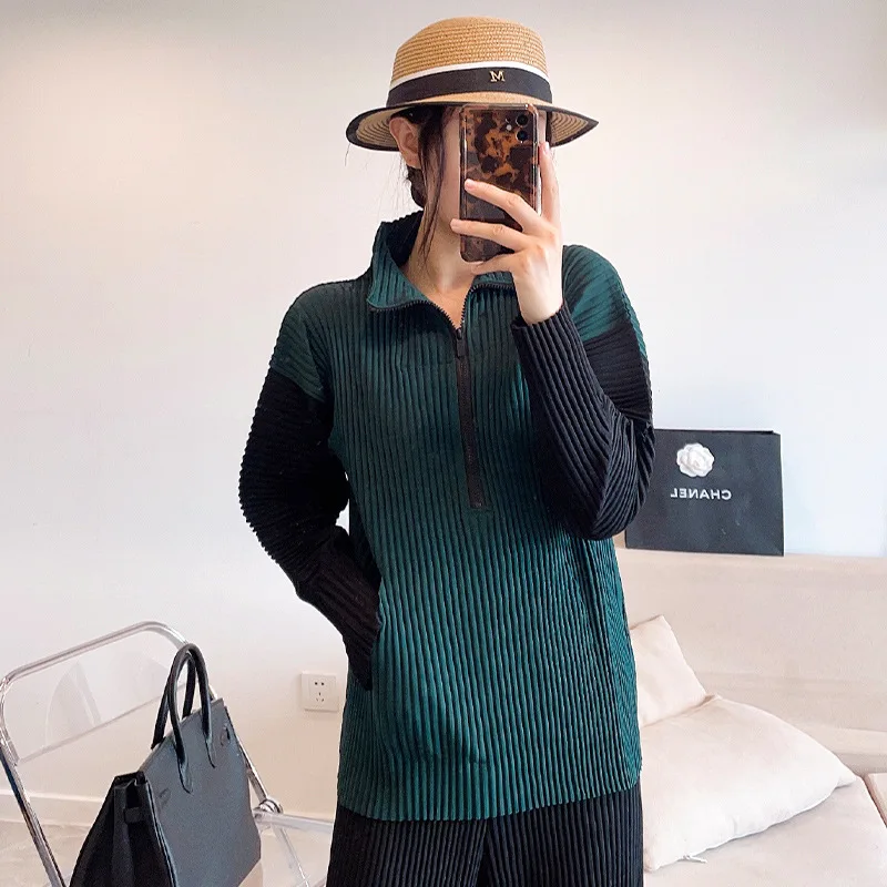 "Changpleat spring women's thickened pleated top Miyak fold Fashion plus size stand-up collar zipper sweater long sleeves loose" * Buy Now Just For 66$