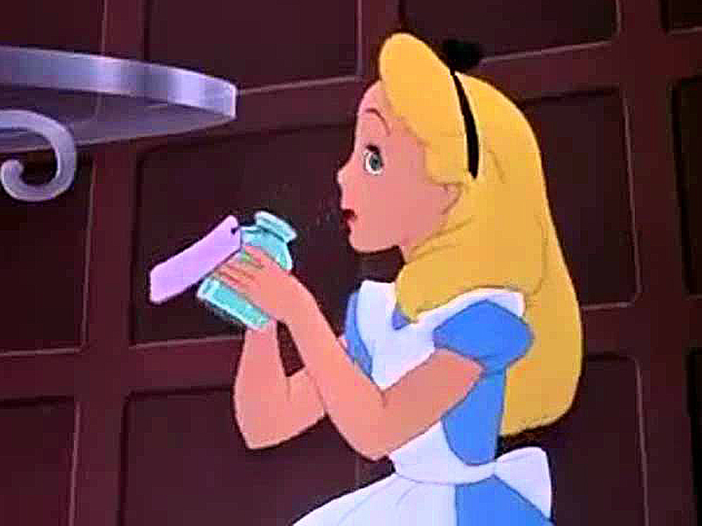 There seemed to be no use in waiting by the little door, so she went back to the table, half hoping she might find another key on it, or at any rate a book of rules for shutting people up like telescopes: this time she found a little bottle on it, ('which certainly was not here before,' said Alice,) and round the neck of the bottle was a paper label, with the words 'DRINK ME' beautifully printed on it in large letters.