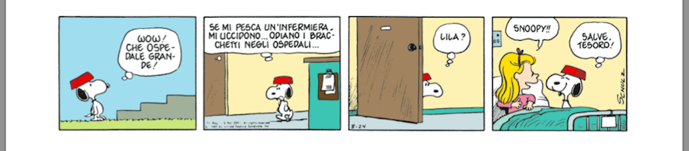 Subsequently, Snoopy was bought by Charlie Brown from Daisy Hill Puppy Farm. Like Snoopy's parents, Lila was also only featured once in the comic strip. In the strip, Snoopy was visiting Lila after having received a letter informing him that she was hospitalized.