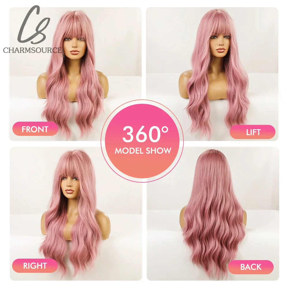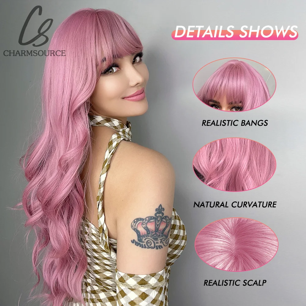 GkEmBgvKFLooked for CharmSource Pink Synthetic Wig Long Natural Wavy Wigs with bangs for Women Party Daily High Density Heat Resistant for a long time, but could not find it? Bring to your attention CharmSource Pink Synthetic Wig Long Natural Wavy Wigs with bangs for Women Party Daily High Density Heat Resistant with the best price!