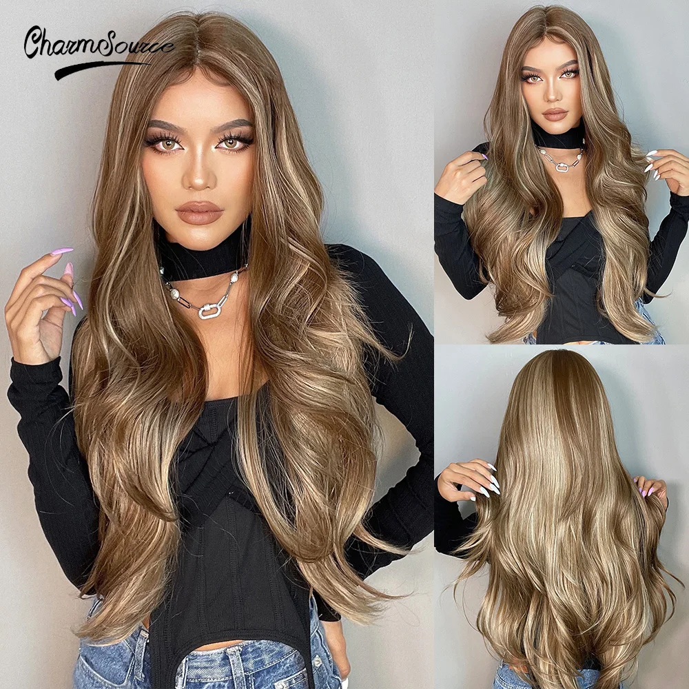 evuxgTpaCLooked for CharmSource Synthetic Front Lace Wig Long Wavy Brown Highlights Blonde Wigs for Women Daily Party High Density Heat Resistant for a long time, but could not find it? Bring to your attention CharmSource Synthetic Front Lace Wig Long Wavy Brown Highlights Blonde Wigs for Women Daily Party High Density Heat Resistant with the best price!