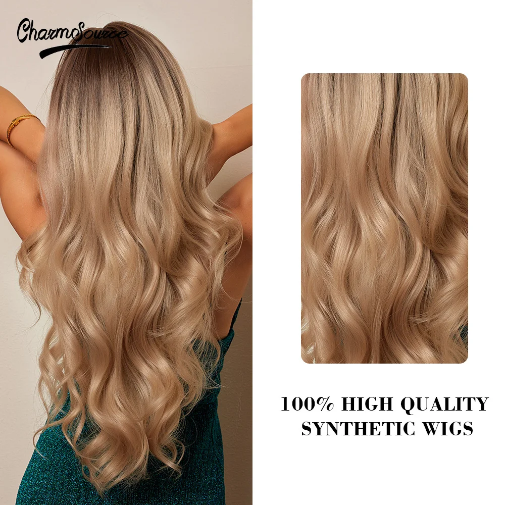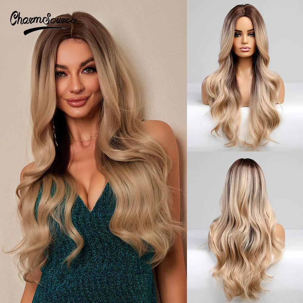 "CharmSource Synthetic Wig Long Wavy Brown Ombre Blonde for Women Party Daily High Density Heat Resistant" * Buy Now Just For 21$