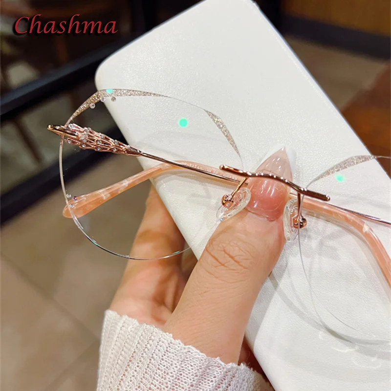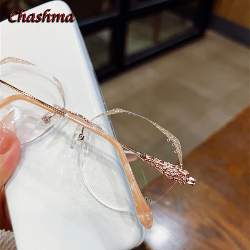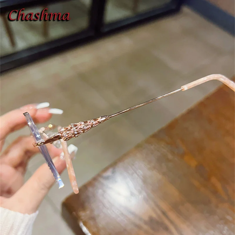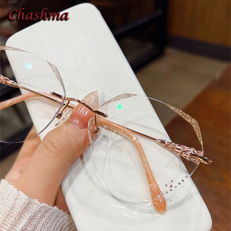 Chashma Fashion Eyeglass Gradient Light Color Lenses Titanium Frame Women Rhinestone Optical Rimless Glitter Spectacles Female - Купить с бесплатной доставкой