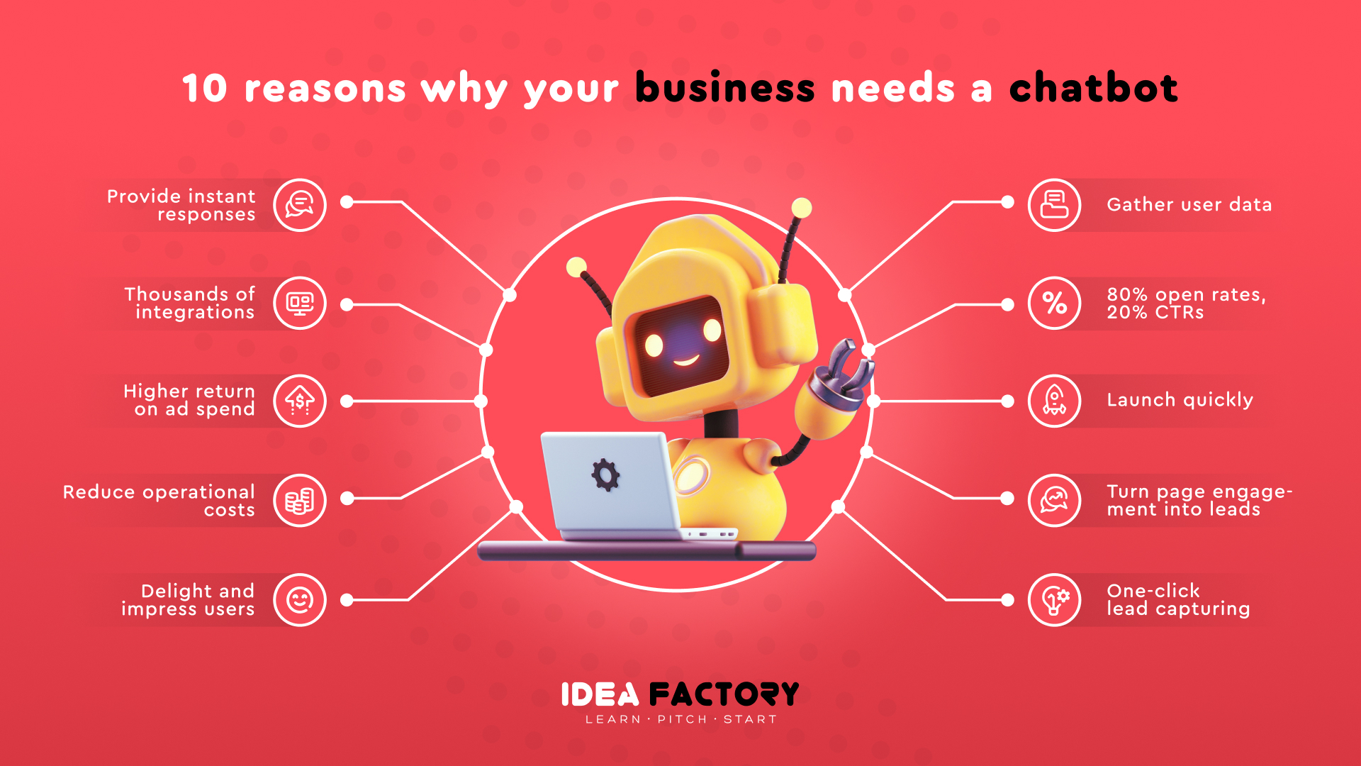 Chatbots help businesses minimize the costs associated with daily and one-type interaction with a large number of users. However, chatbots are not mere robots that understand just a couple of commands. Modern algorithms are able to interact in more complex cases. They can answer similar questions but formulated in different ways, adjusting to variable and nonlinear contexts. This way, chatbots enable startups to optimize staff-associated costs, save time, and create a great user experience.