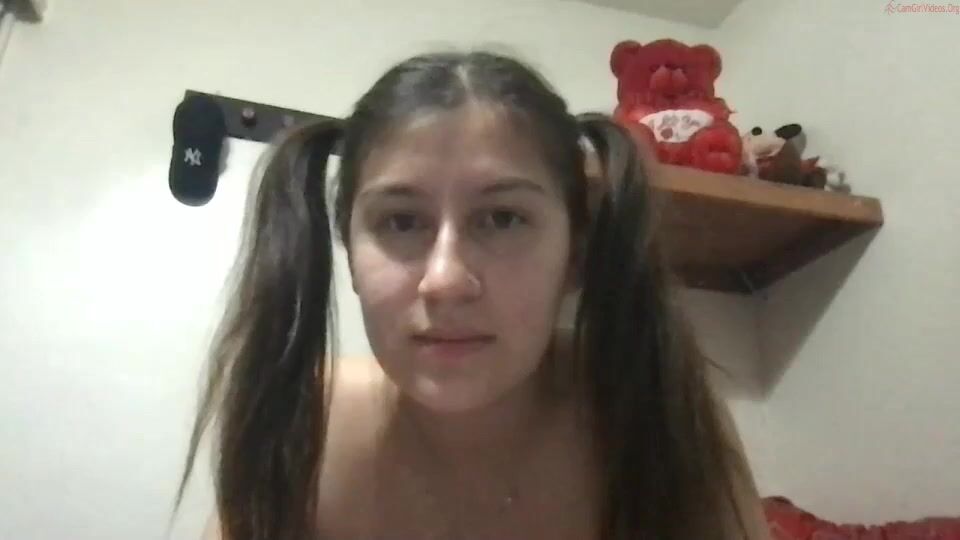 Submissive babe on webcam torturing her breasts