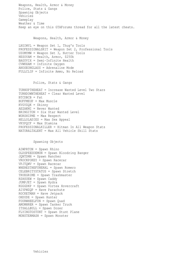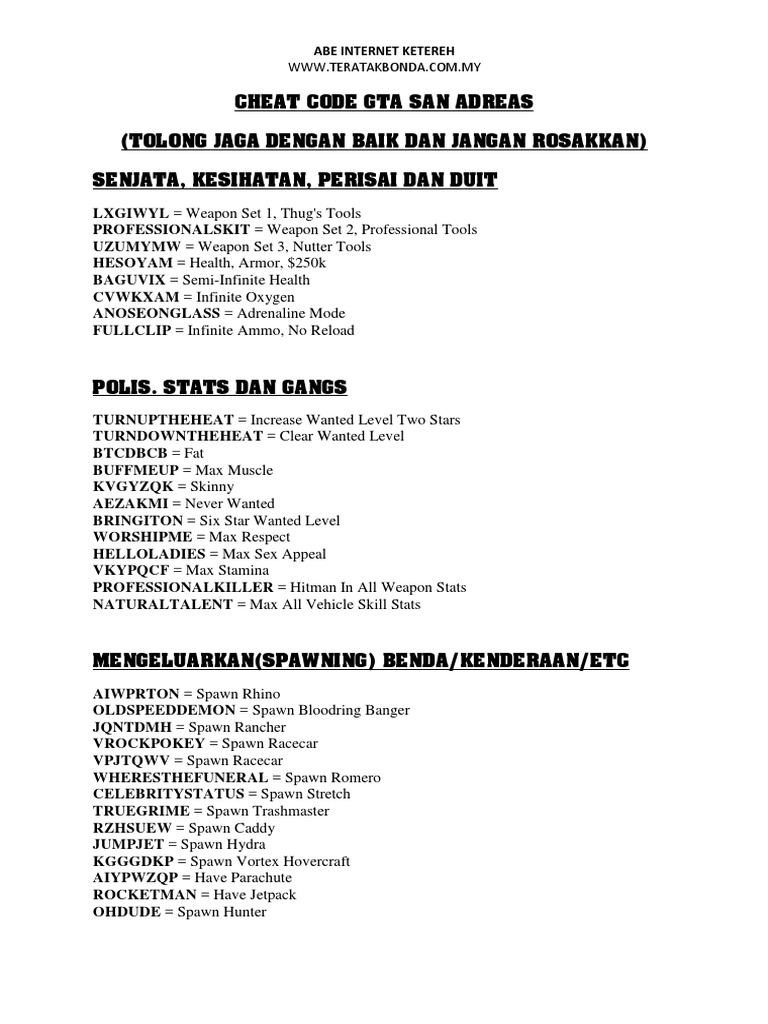 Cheat Codes Sex Original