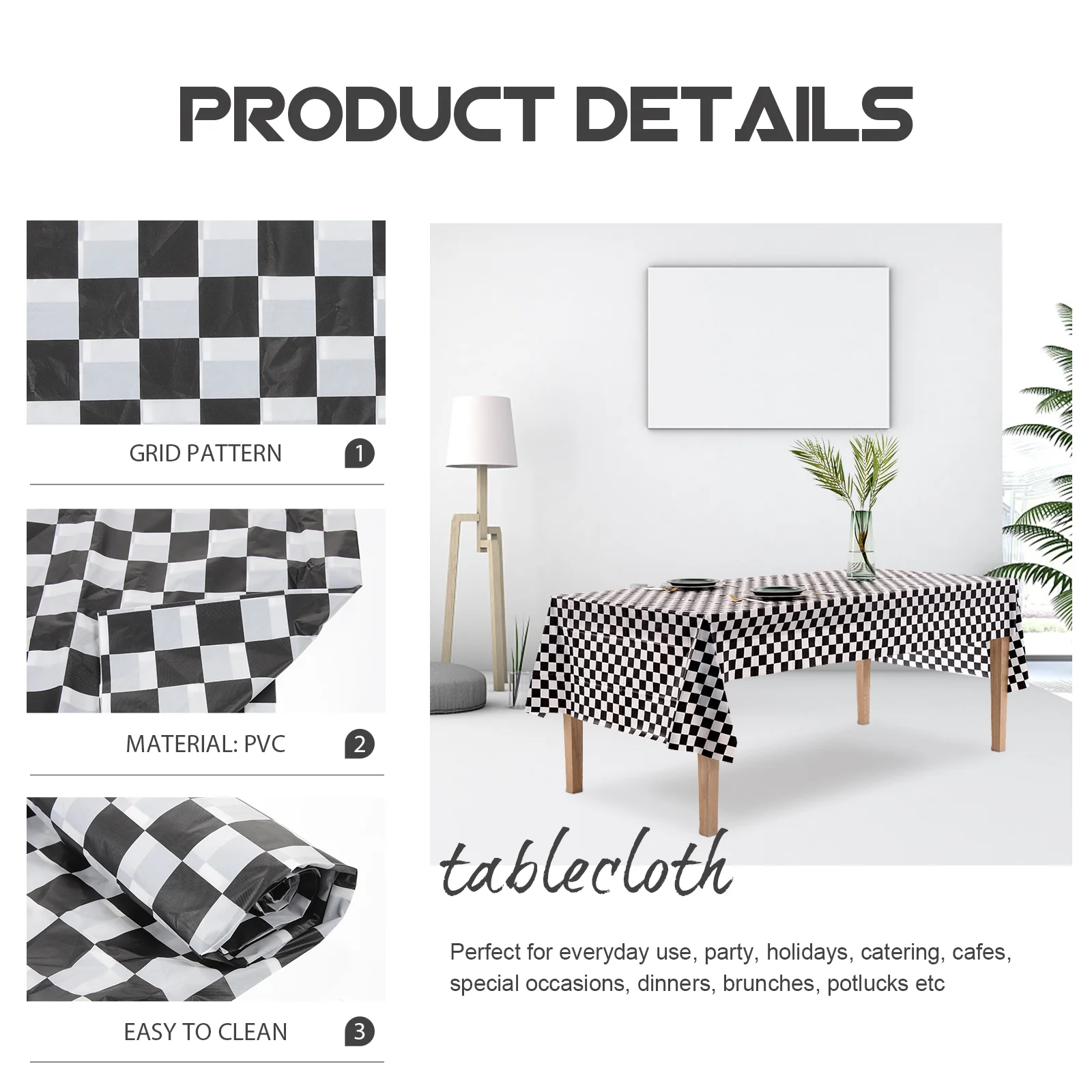 Checkered Pattern Table Elegant Home Oil-proof Waterproof Dustproof Tablecloth (Black and White Grid Pattern, 137 x 137cm) - Купить с бесплатной доставкой