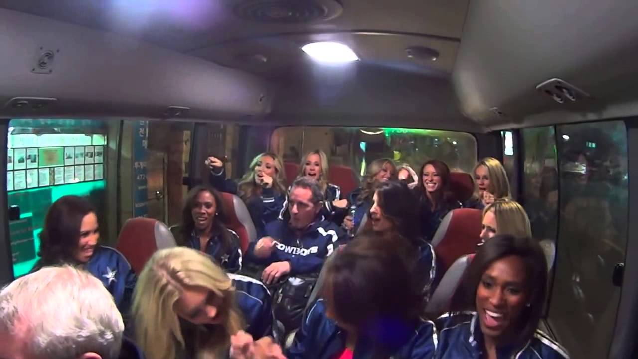Cheerleaders on the bus - YouTube